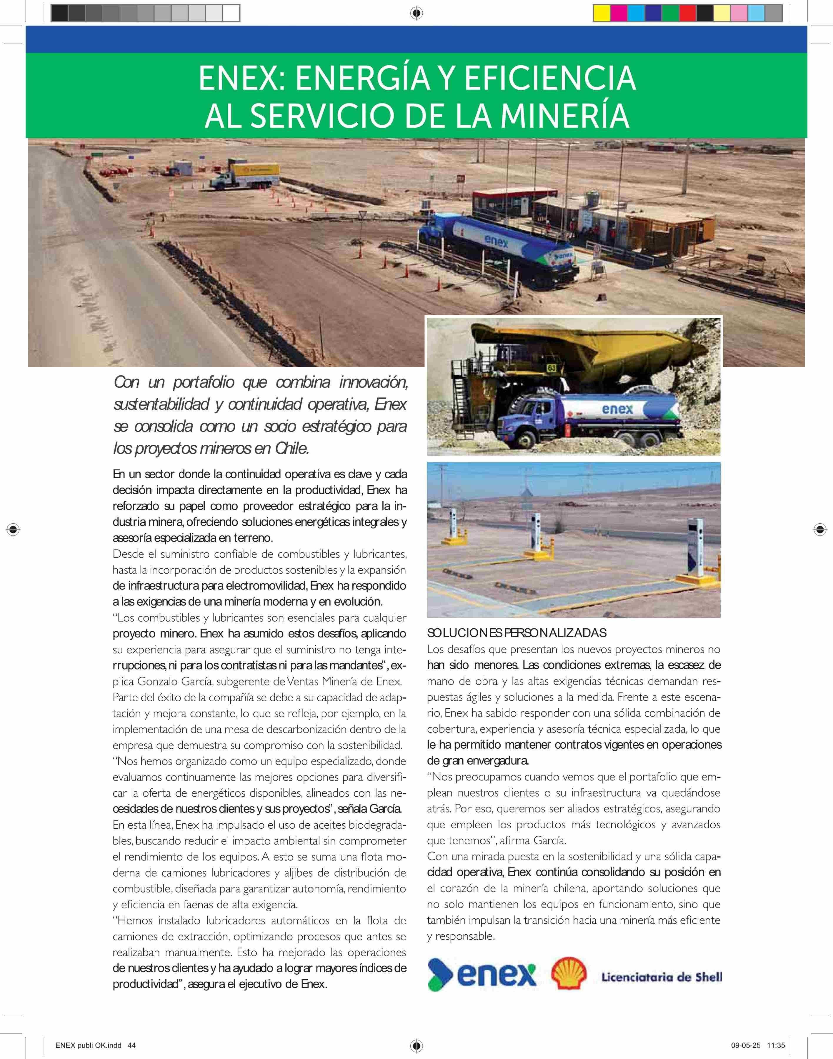 ENEX: ENERGÍA Y EFICIENCIA AL SERVICIO DE LA MINERIA 19-05-2025 Revista Nueva Minería & Energía |