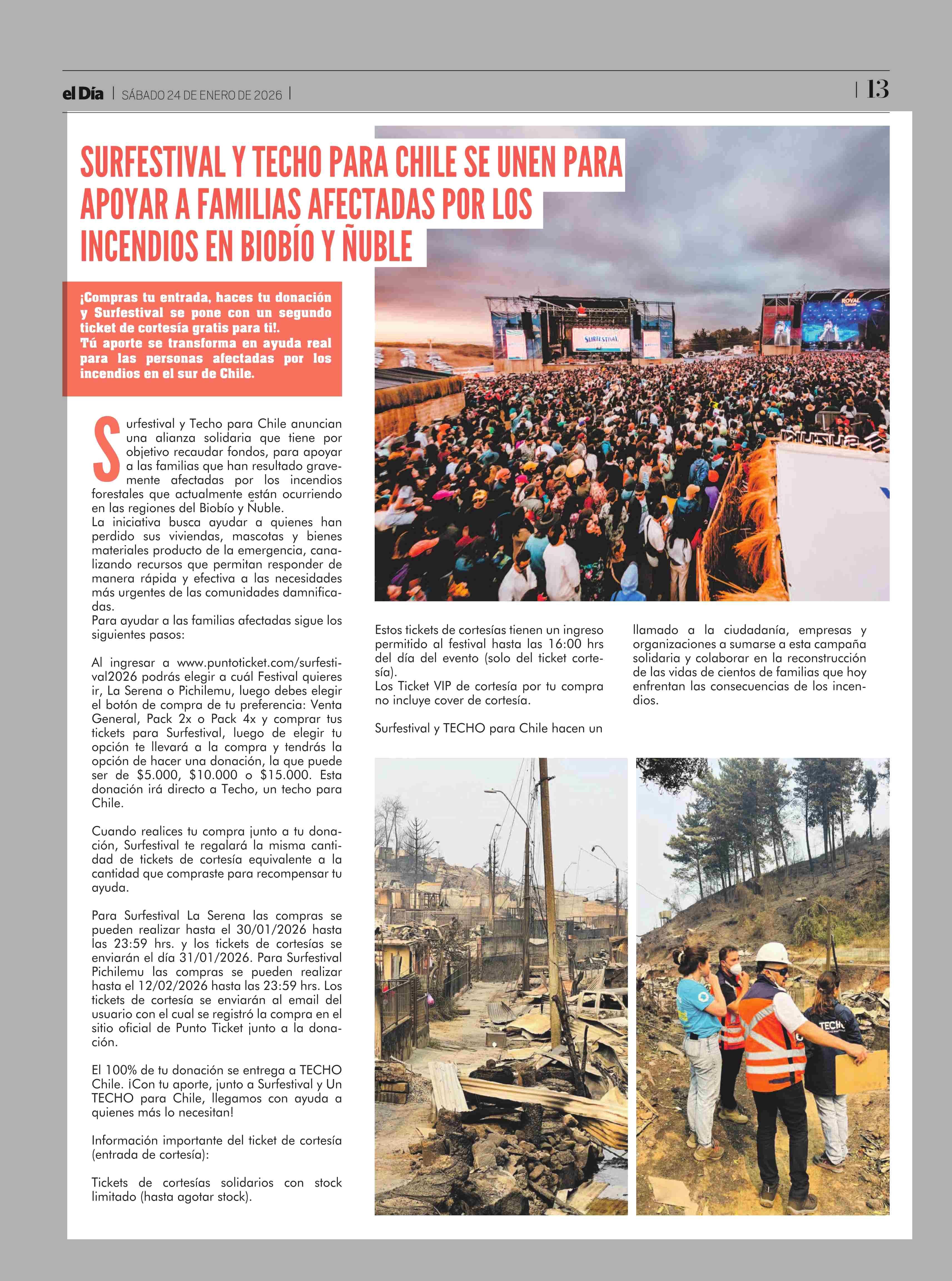 Título: SURFESTIVAL Y TECHO PARA CHILE SE UNEN PARA APOYAR A FAMILIAS AFECTADAS POR LOS INCENDIOS EN BIOBÍO Y ÑUBLE