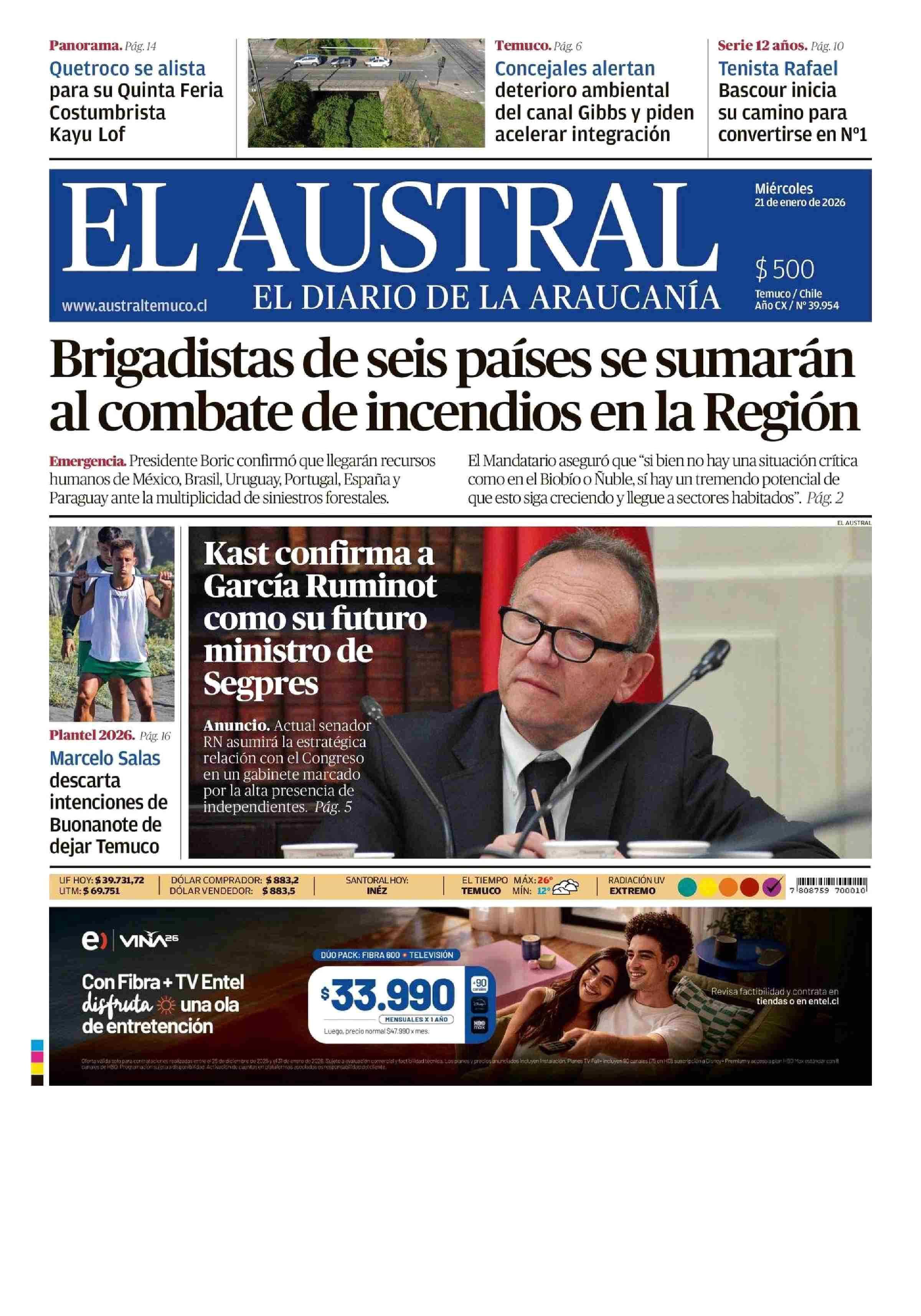 Fecha: 21-01-2026 Sector: Portada Región: Región de la Araucanía