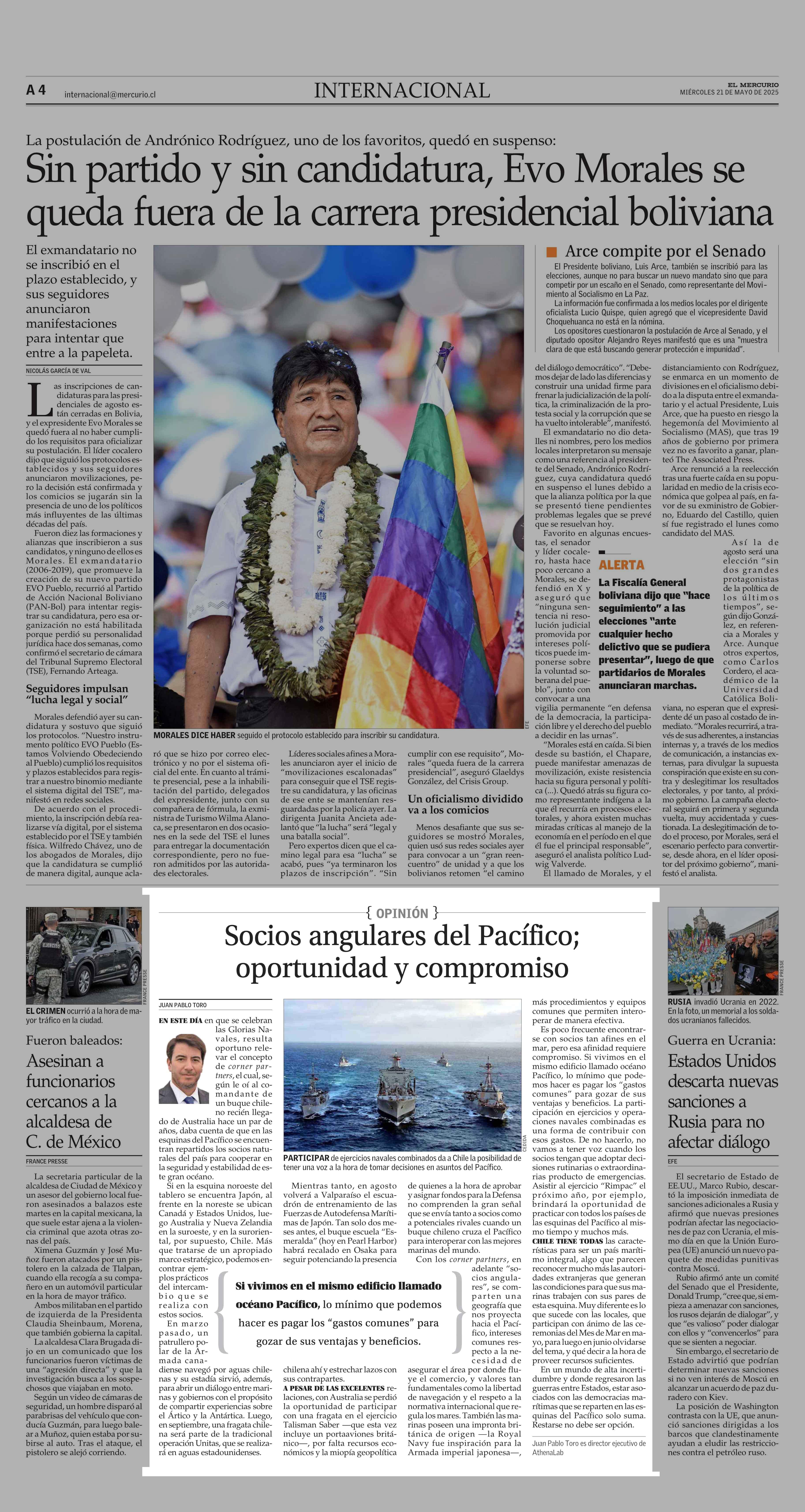 COLUMNAS DE OPINIÓN: Socios angulares del Pacífico; oportunidad y compromiso 21-05-2025 El Mercurio |