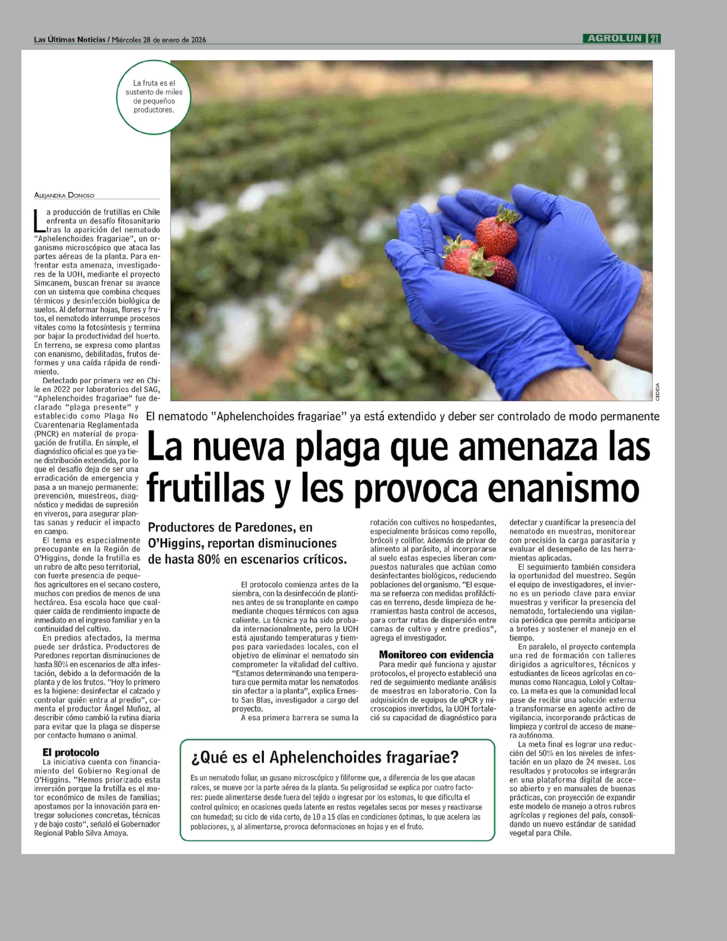 La nueva plaga que amenaza las frutillas y les provoca enanismo 28-01-2026 Las Últimas Noticias |