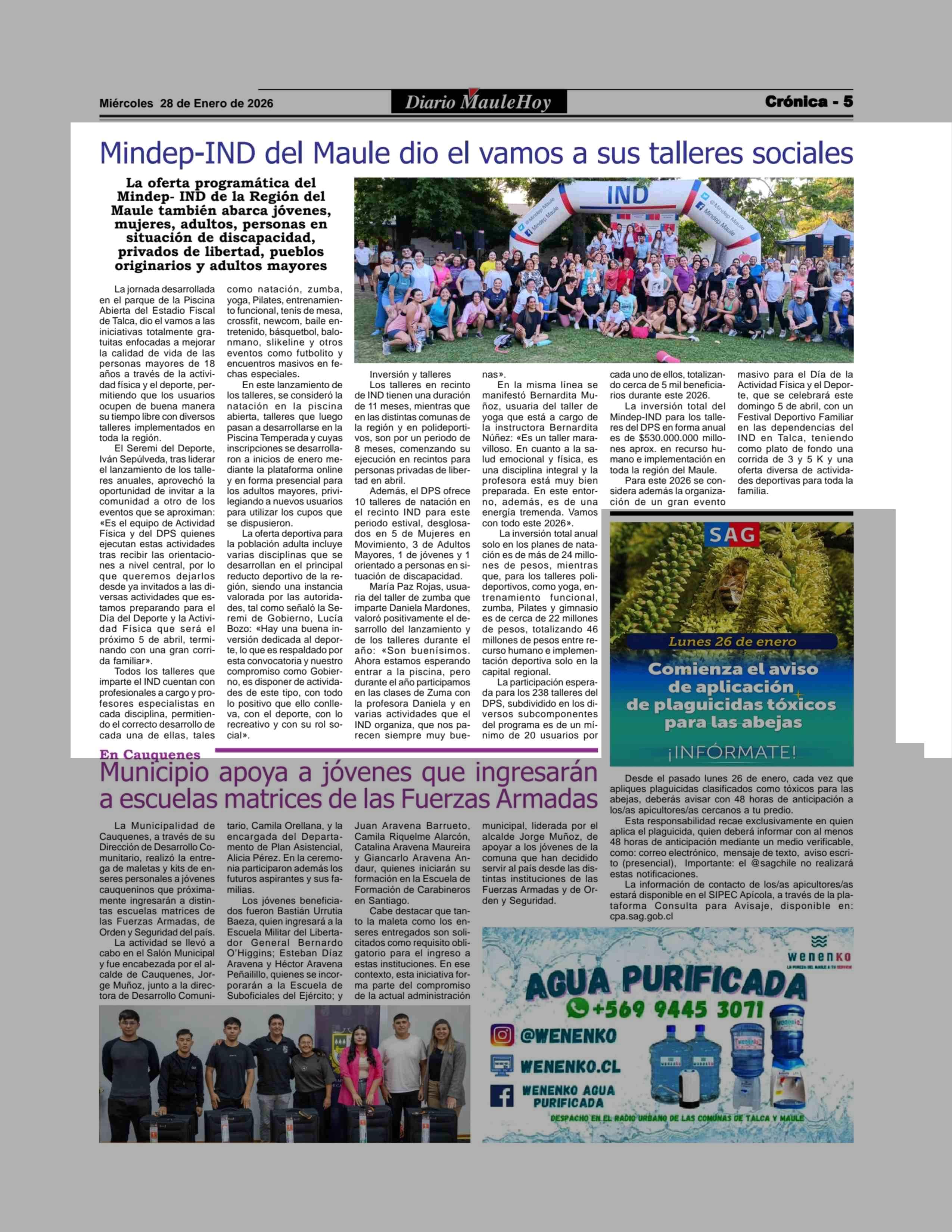 | Fecha: | 28-01-2026 | Sector: | Noticia general | Región: | Región del Maule |