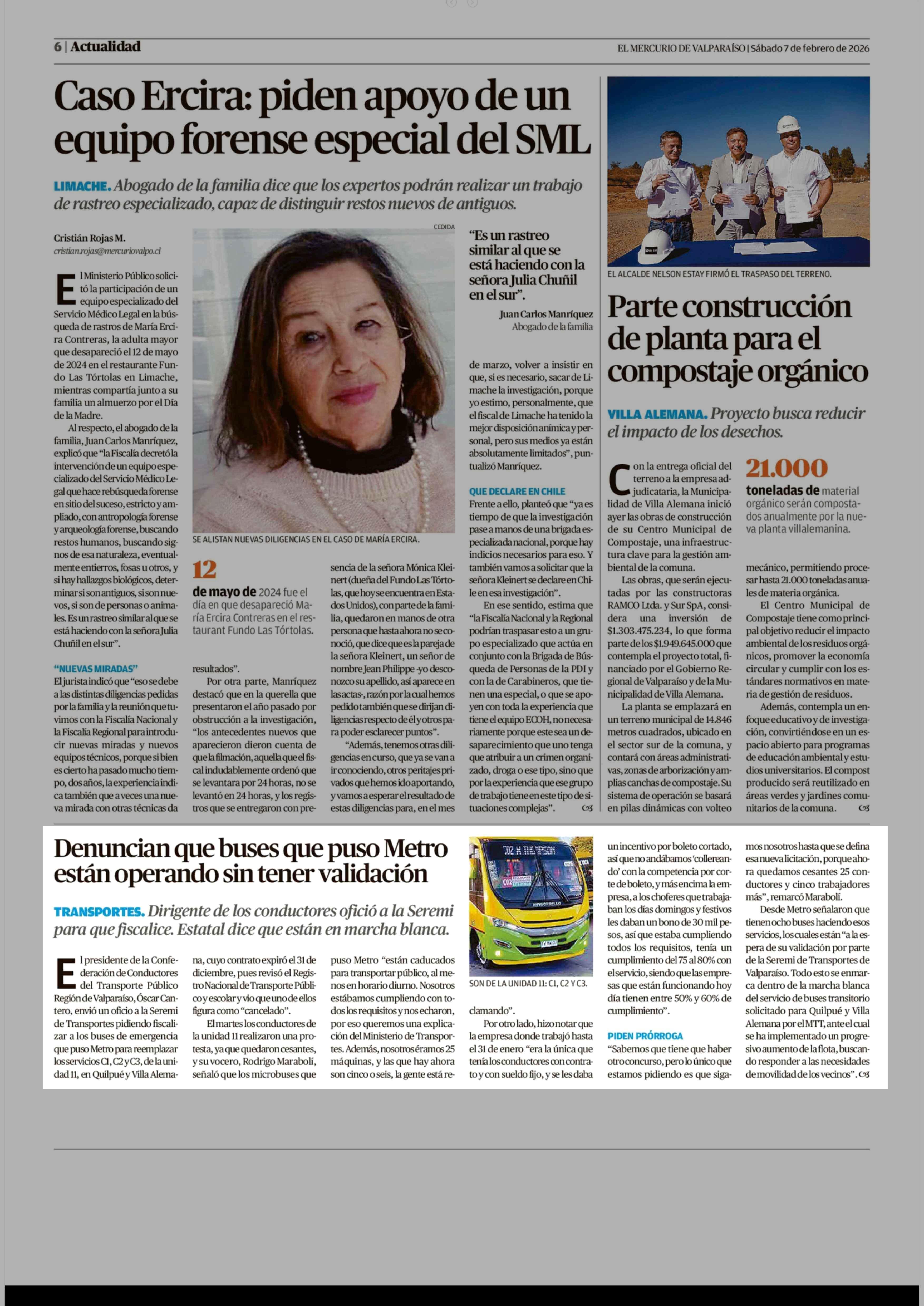 Denuncian que buses que puso Metro están operando sin tener validación 07-02-2026 El Mercurio de Valparaíso |