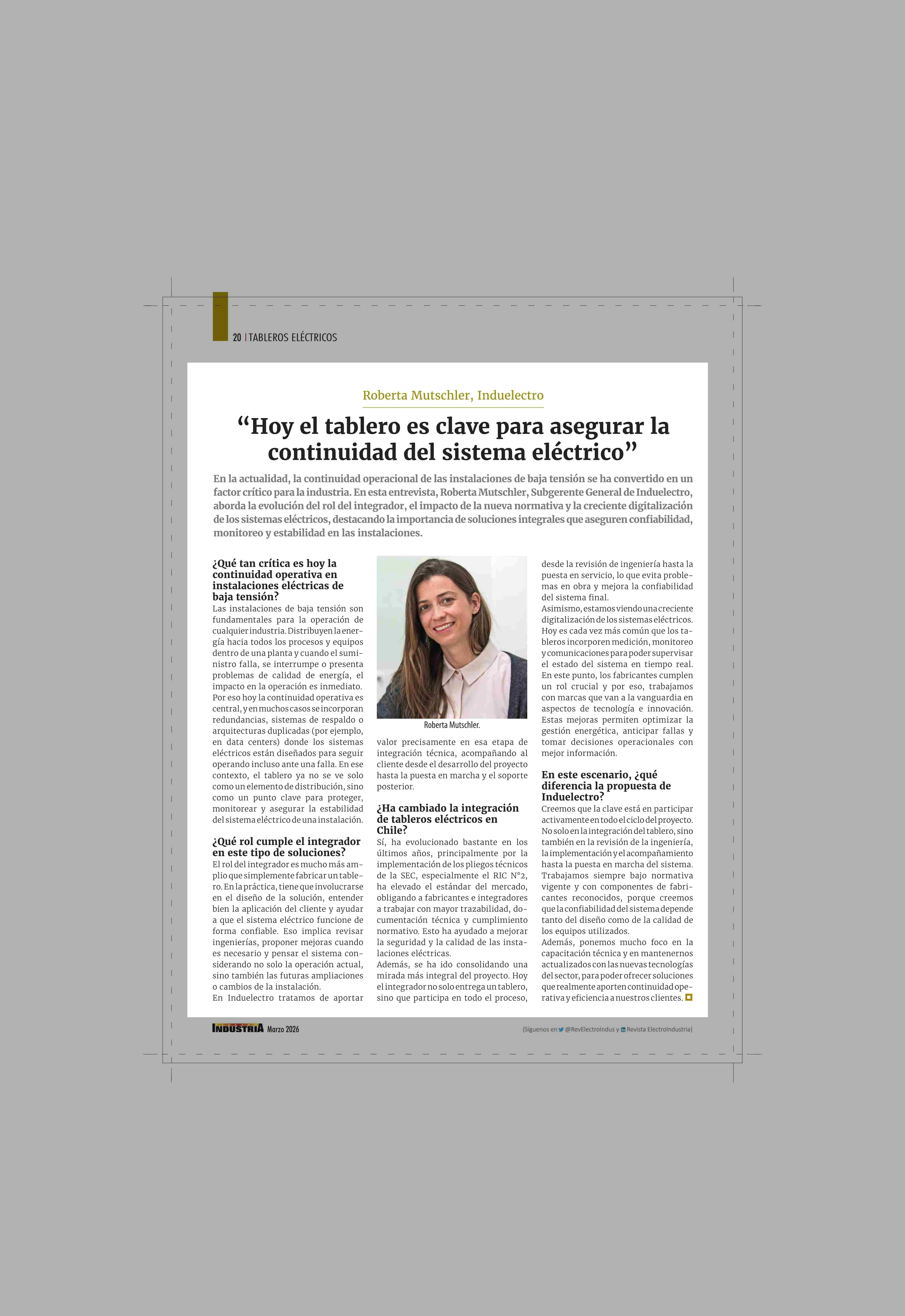 “Hoy el tablero es clave para asegurar la continuidad del sistema eléctrico” 25-03-2026 Revista Electro Industria |