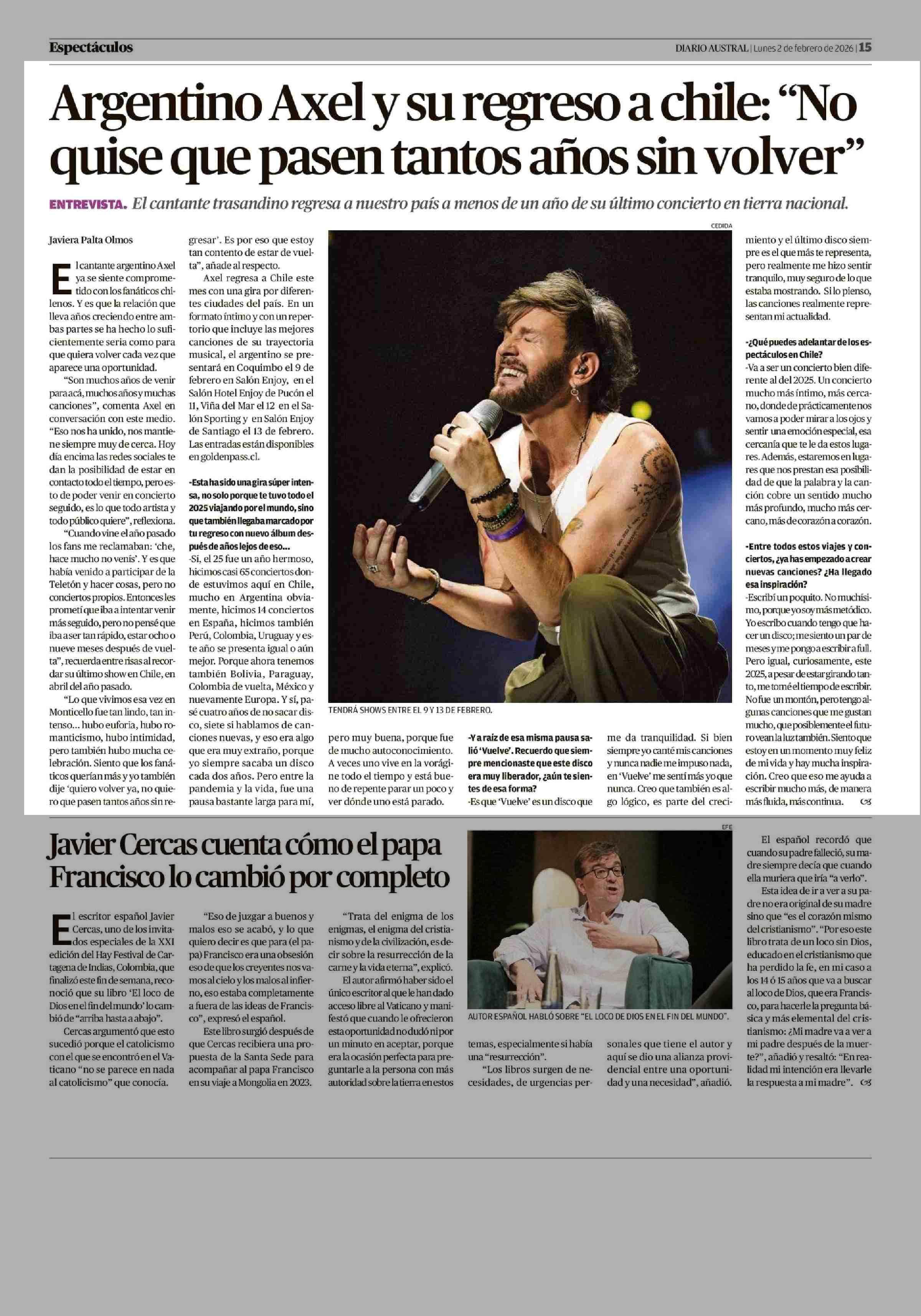 Título: Argentino Axel y su regreso a chile: “No quise que pasen tantos años sin volver”