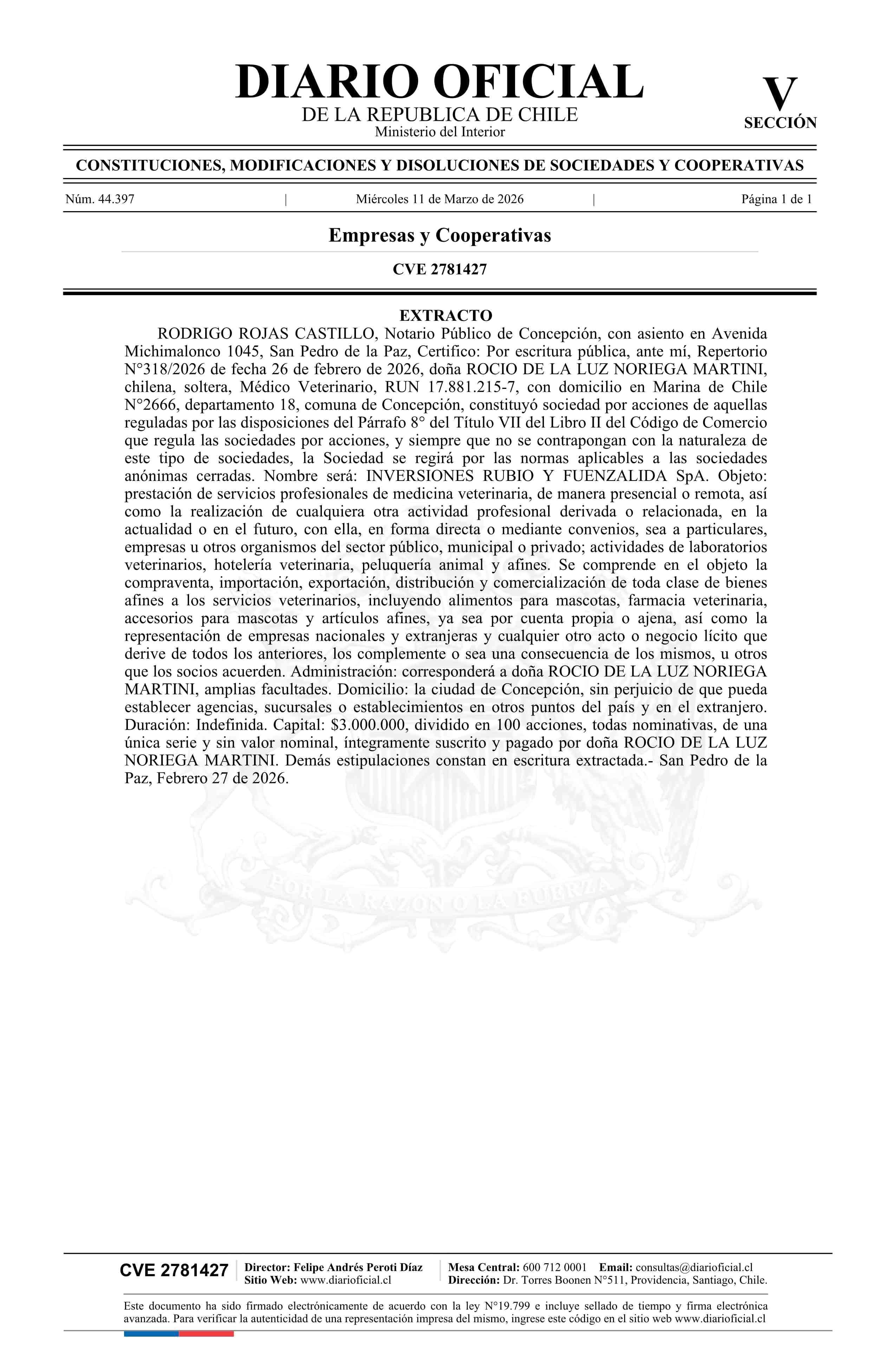 Título: Inversiones Rubio Fuenzalida SpA