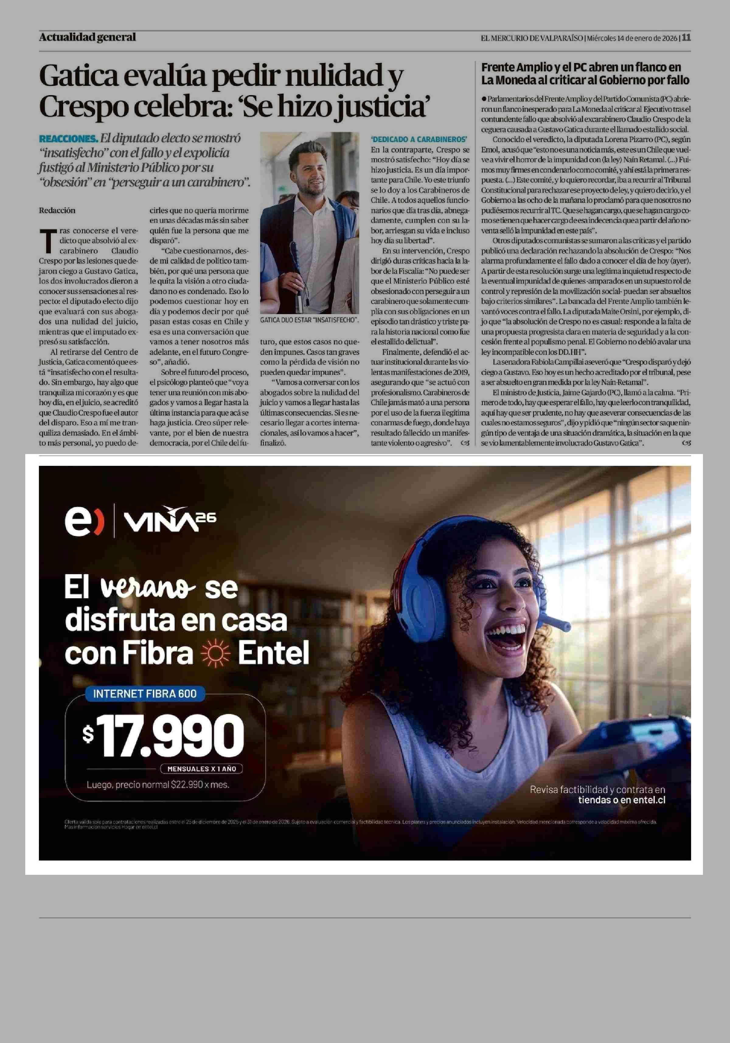 Aviso Telecomunicaciones: entel 14-01-2026 El Mercurio de Valparaíso |