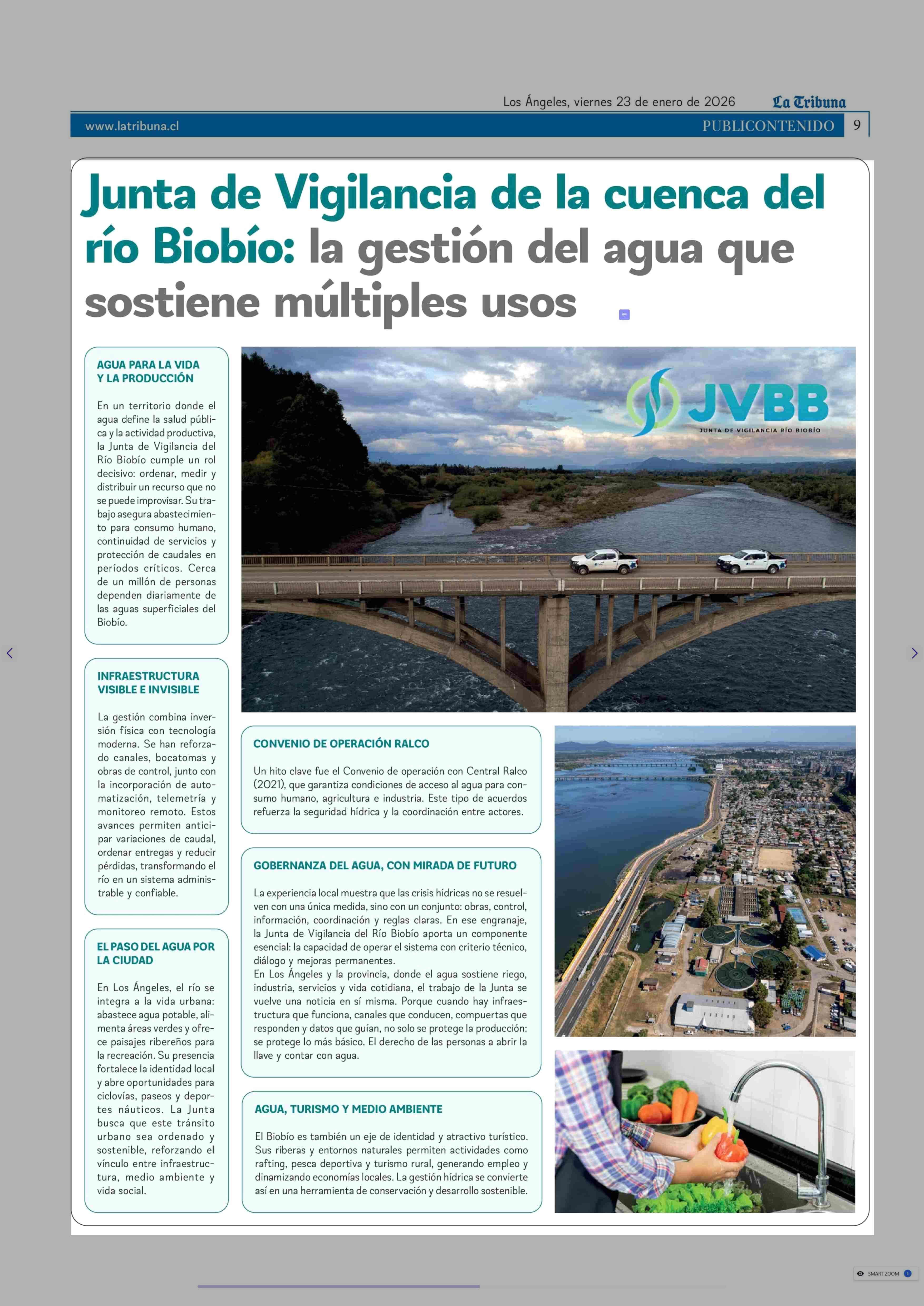 Junta de Vigilancia de la cuenca del río Biobio: la gestión del agua que sostiene múltiples usos 23-01-2026 La Tribuna |
