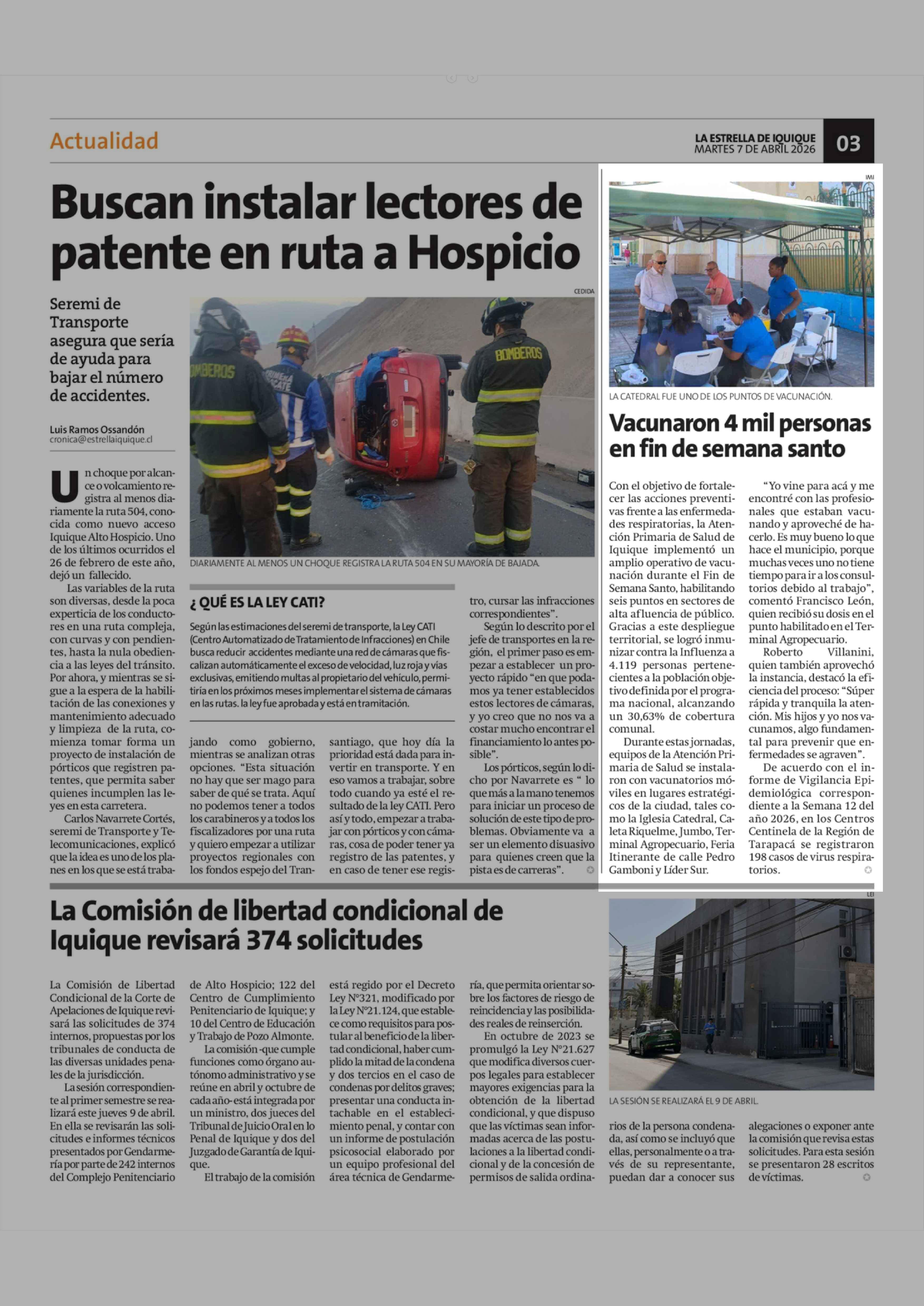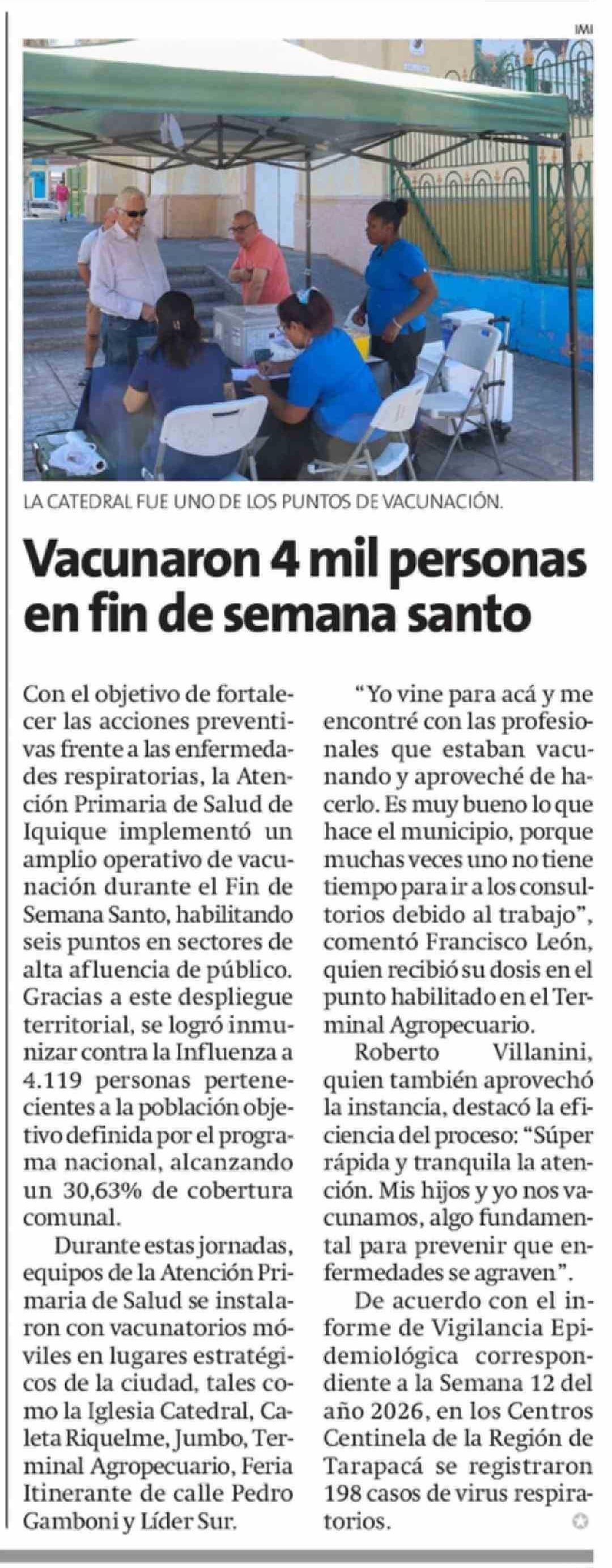 Vacunaron 4 mil personas en fin de semana santo 07-04-2026 La Estrella de Iquique |