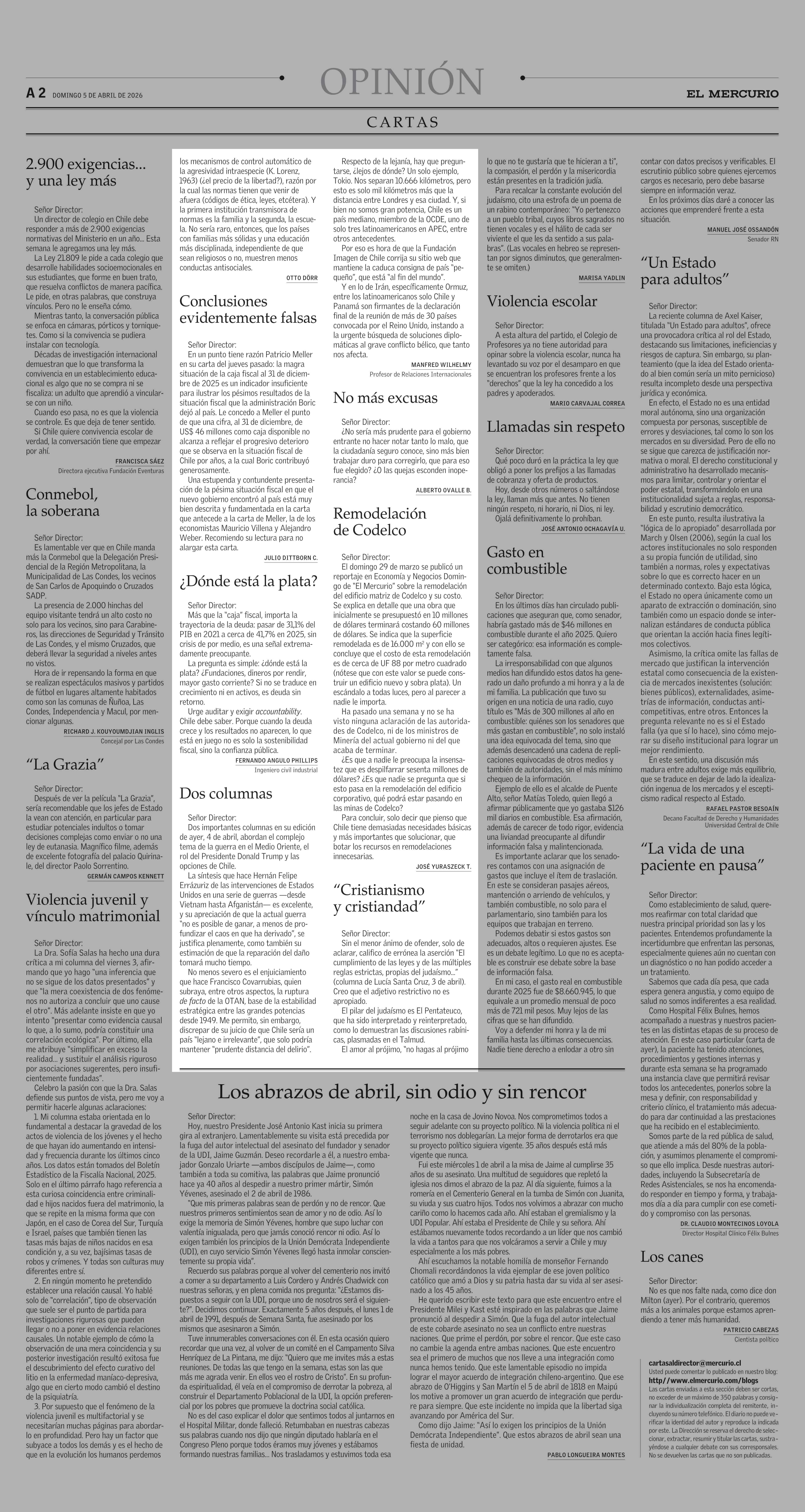 Cartas: Dos columnas 05-04-2026 El Mercurio |