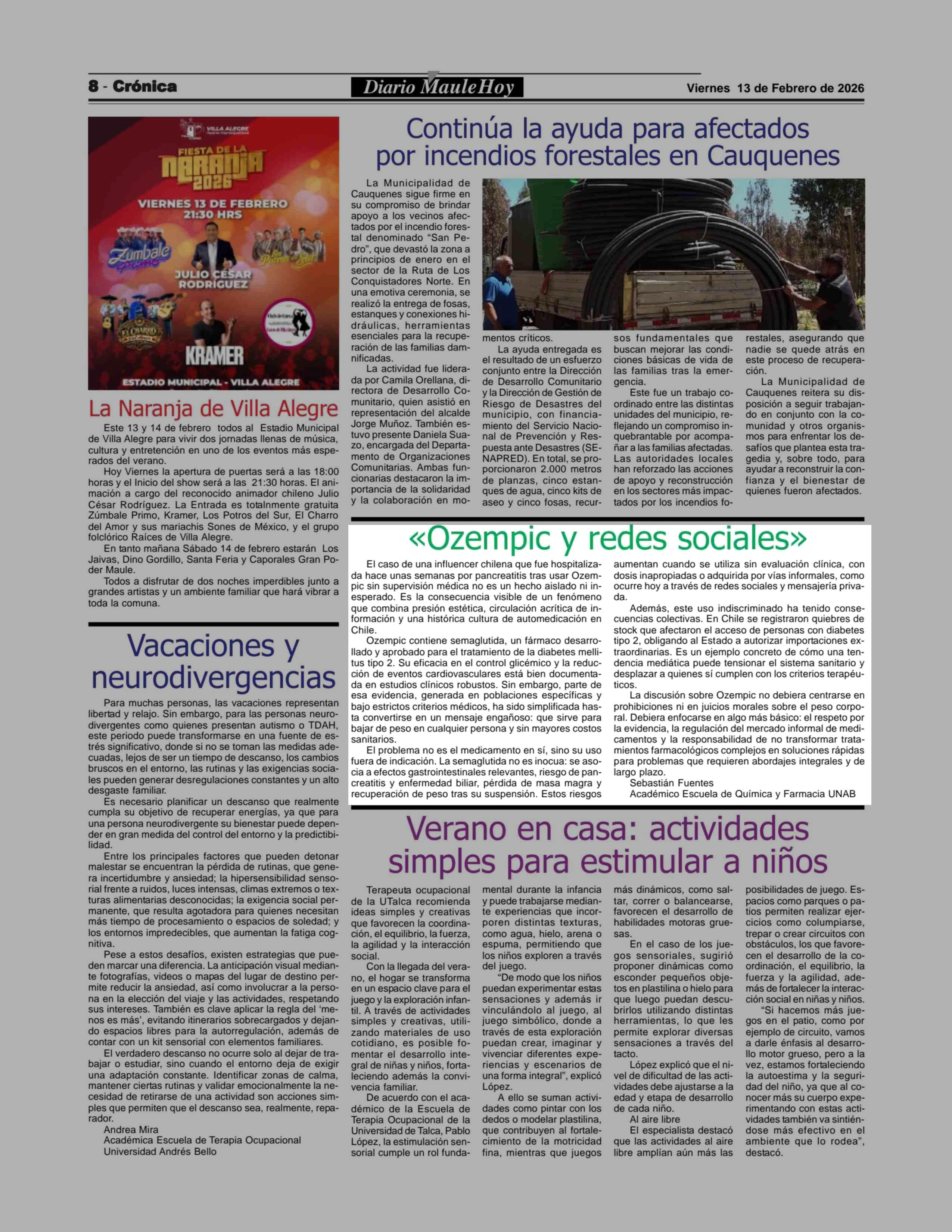 COLUMNAS DE OPINIÓN: «Ozempic y redes sociales» 13-02-2026 Maule Hoy |