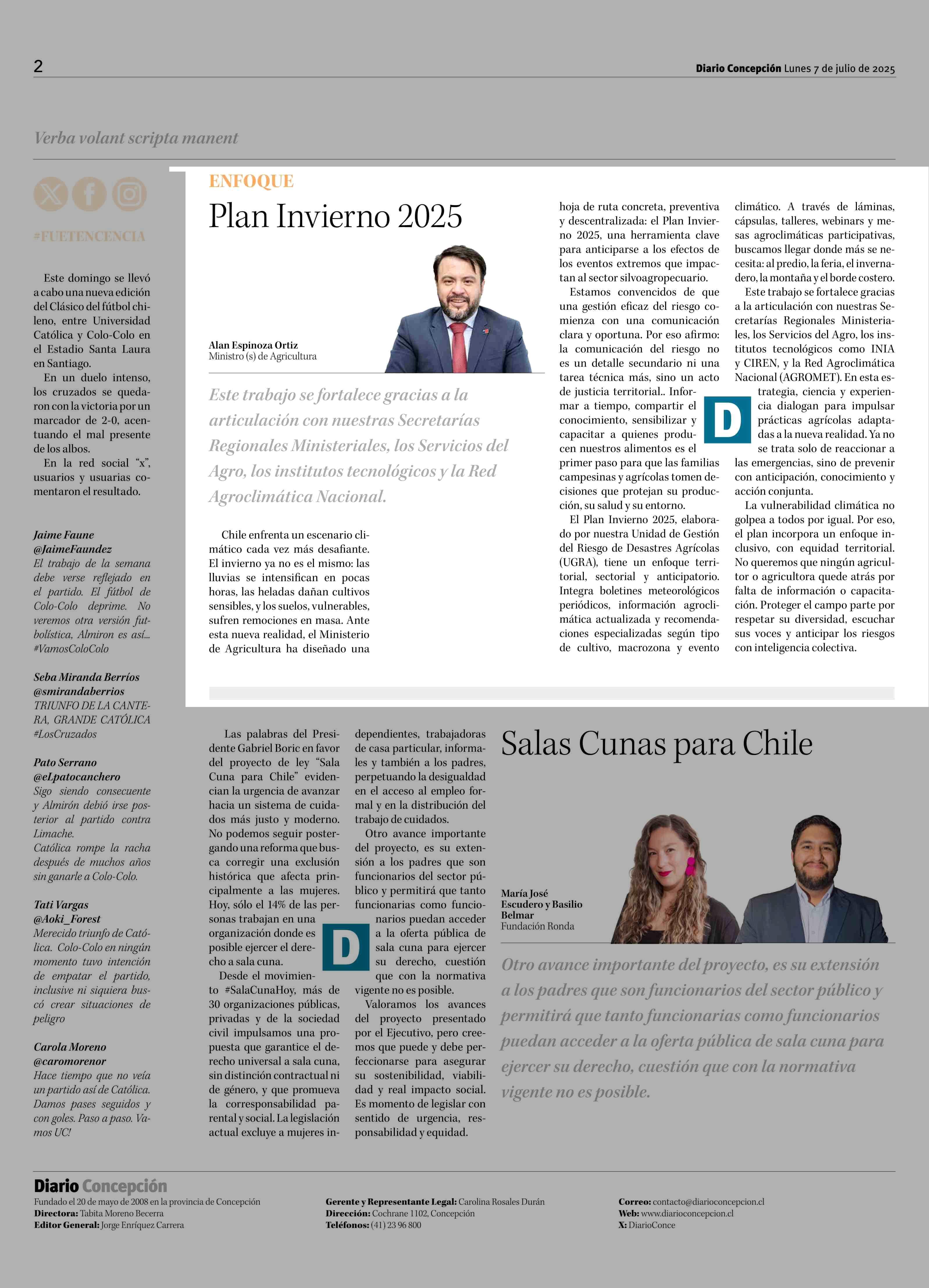 COLUMNAS DE OPINIÓN: Plan Invierno 2025 07-07-2025 Diario Concepción |