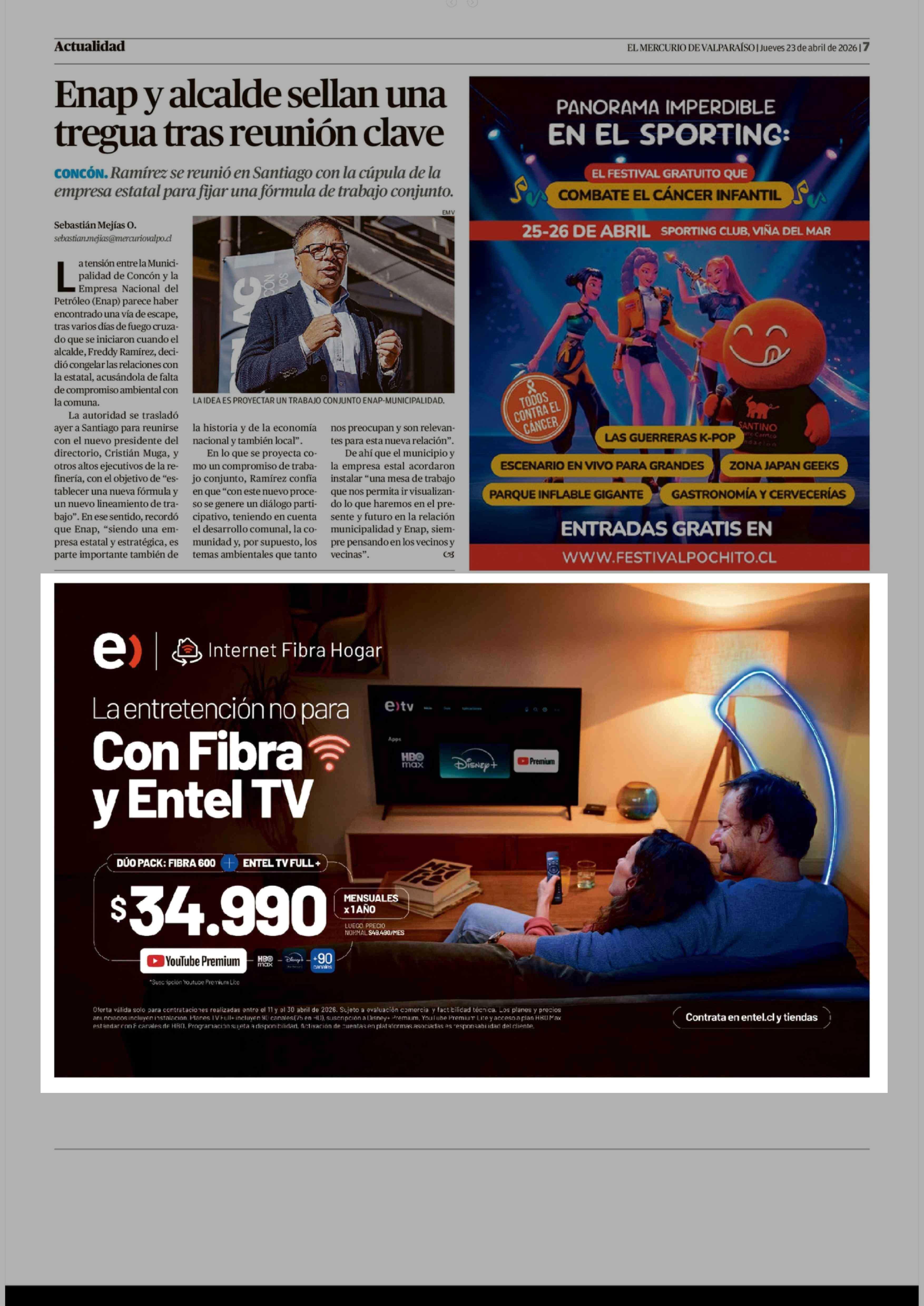 Aviso Telecomunicaciones: PUBLICIDAD 23-04-2026 El Mercurio de Valparaíso |