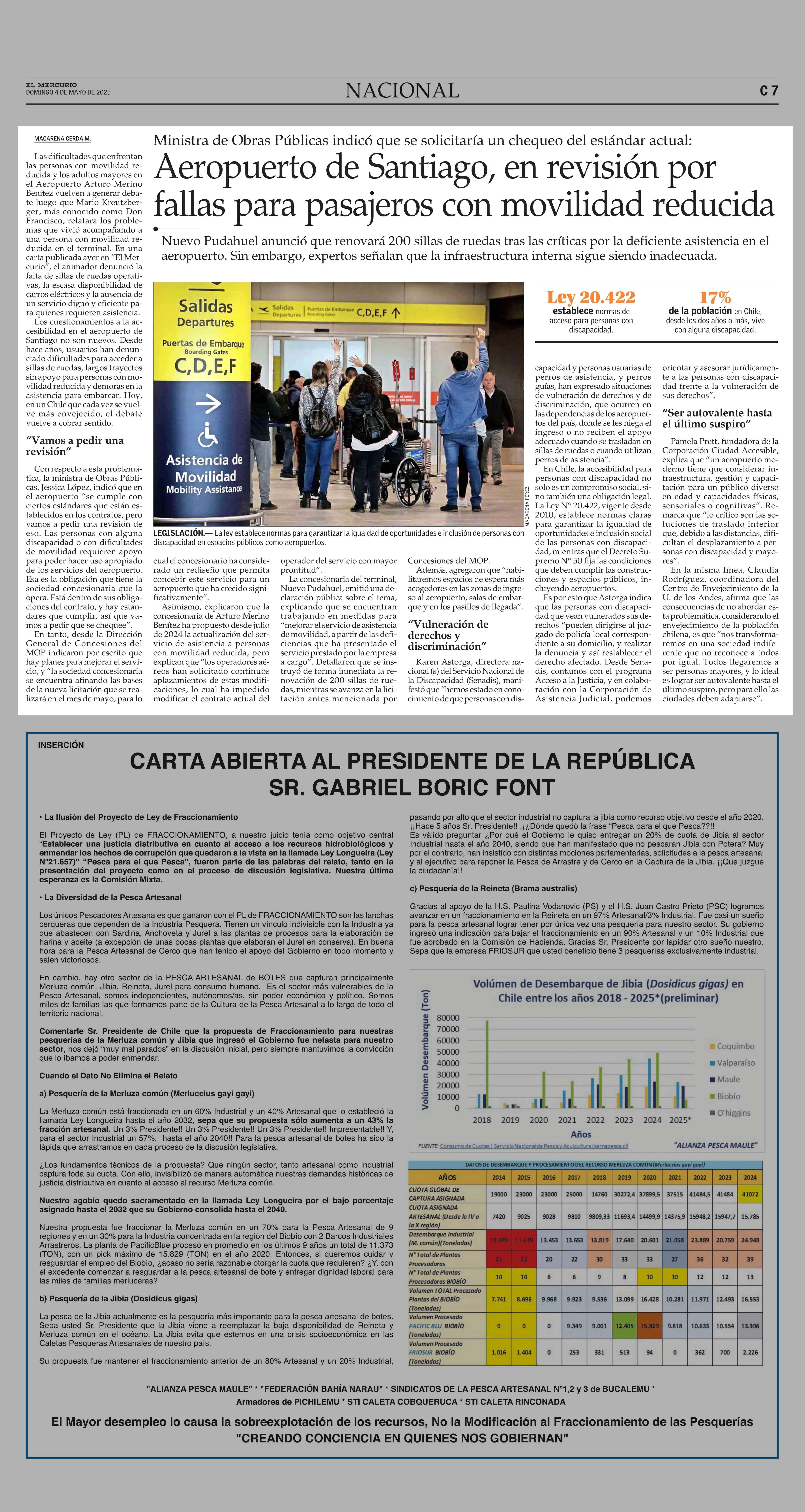 Aeropuerto de Santiago, en revisión por fallas para pasajeros con movilidad reducida 04-05-2025 El Mercurio |