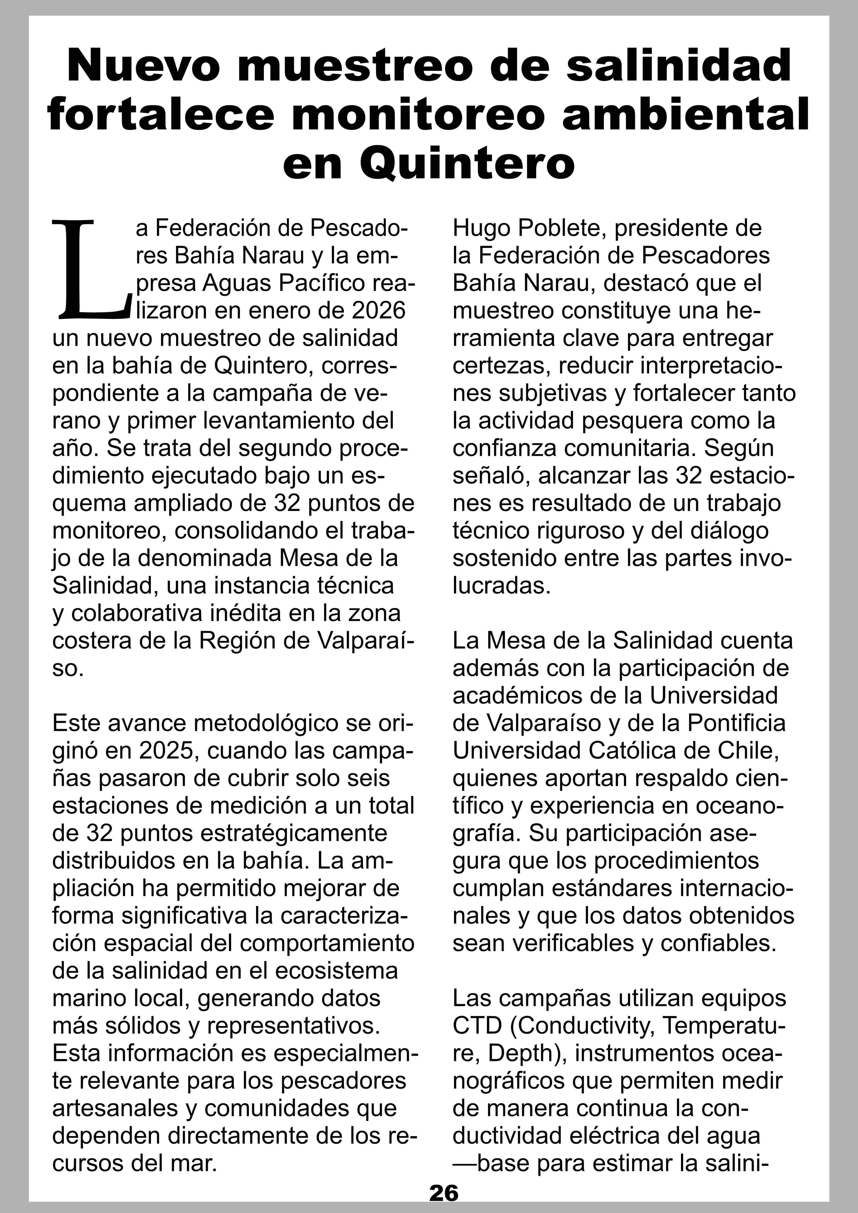 Nuevo muestreo de salinidad fortalece monitoreo ambiental en Quintero 18-02-2026 Contraplano Reñaca-Concón-Quintero-Puchuncavi-Zapa |