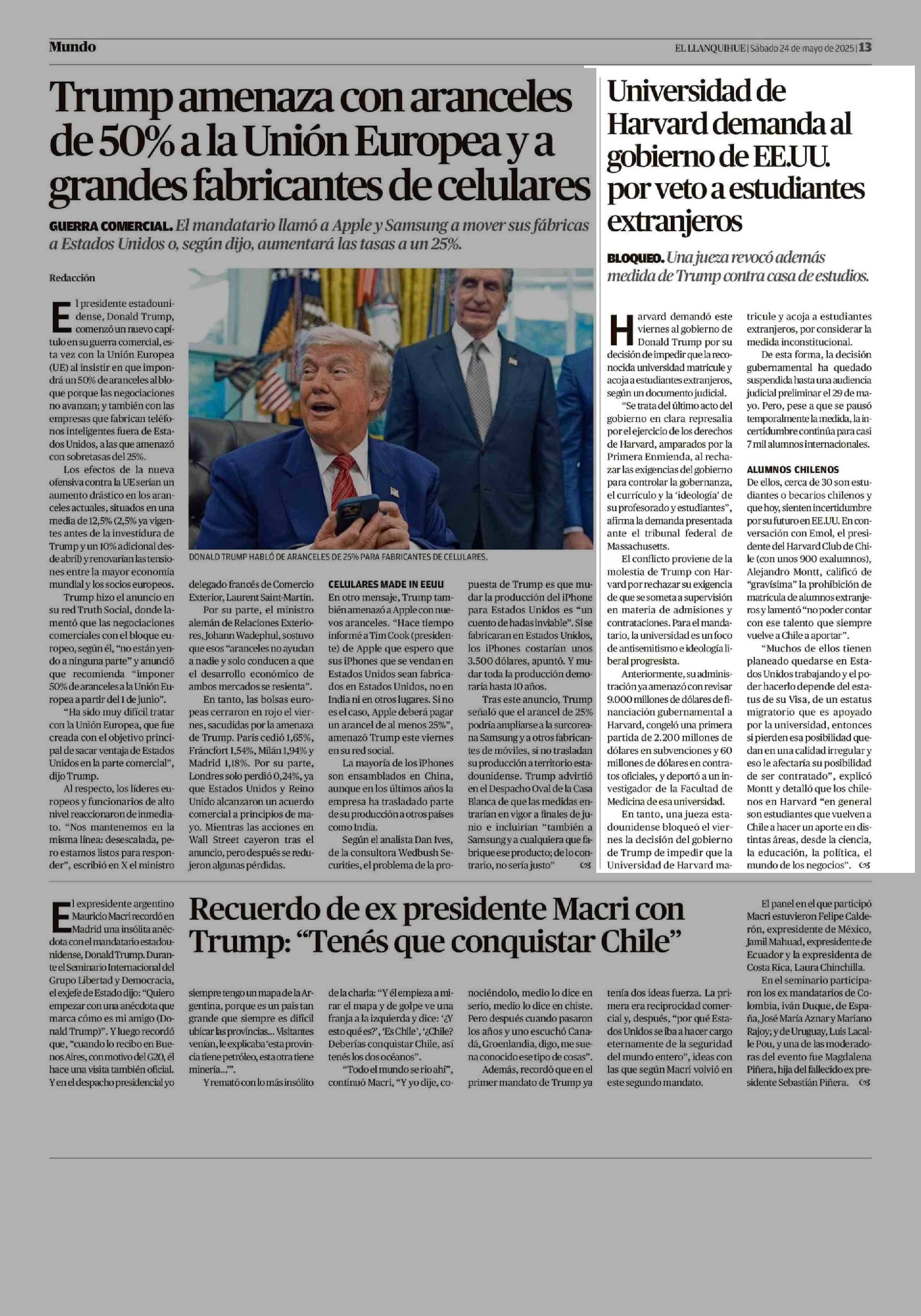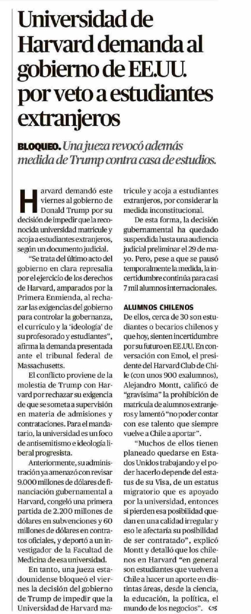 Universidad de Harvard demanda al gobierno de EE.UU. por veto a estudiantes extranjeros 24-05-2025 El Llanquihue |