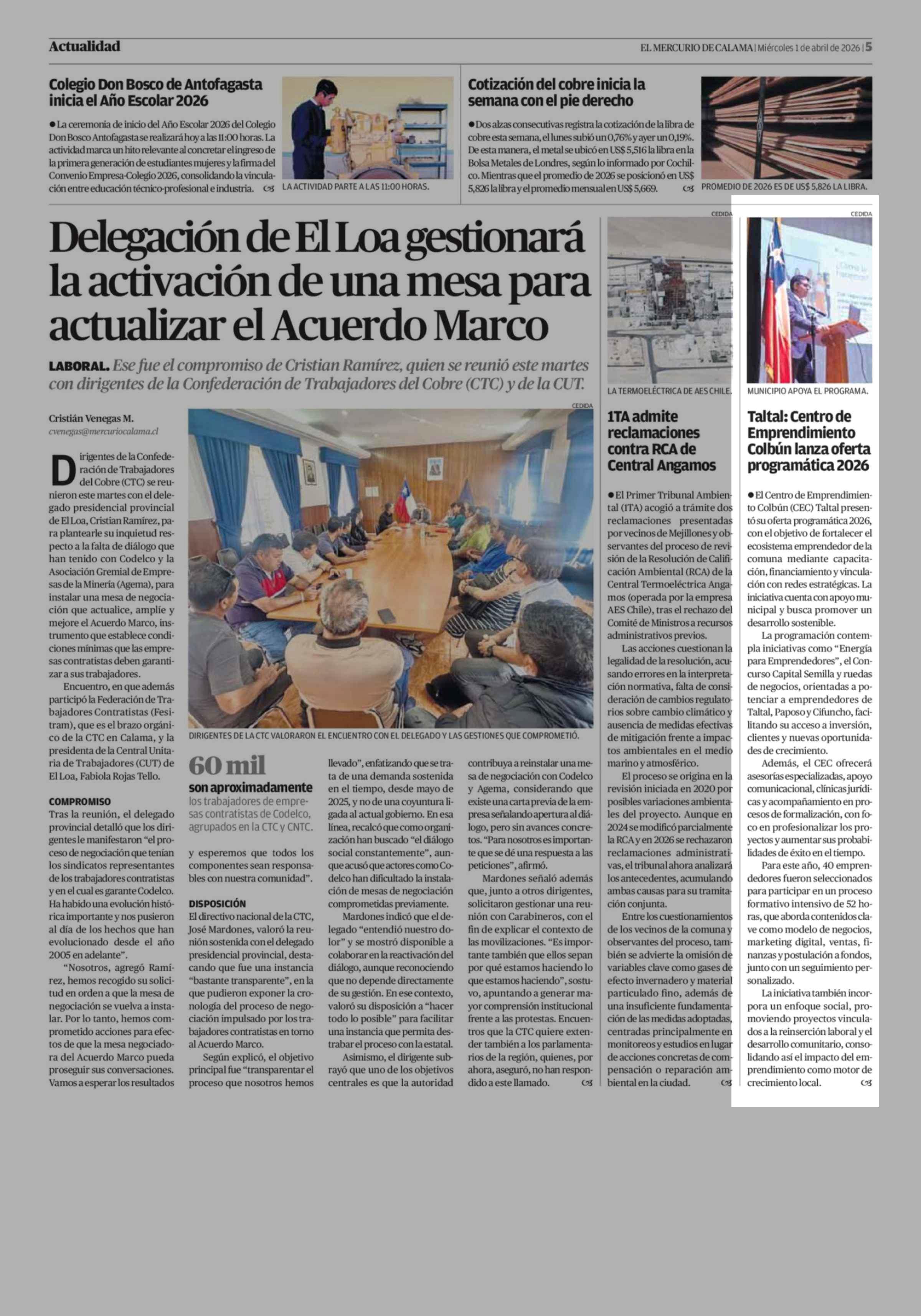 Taltal: Centro de Emprendimiento Colbún lanza oferta programática 2026 01-04-2026 El Mercurio de Calama |