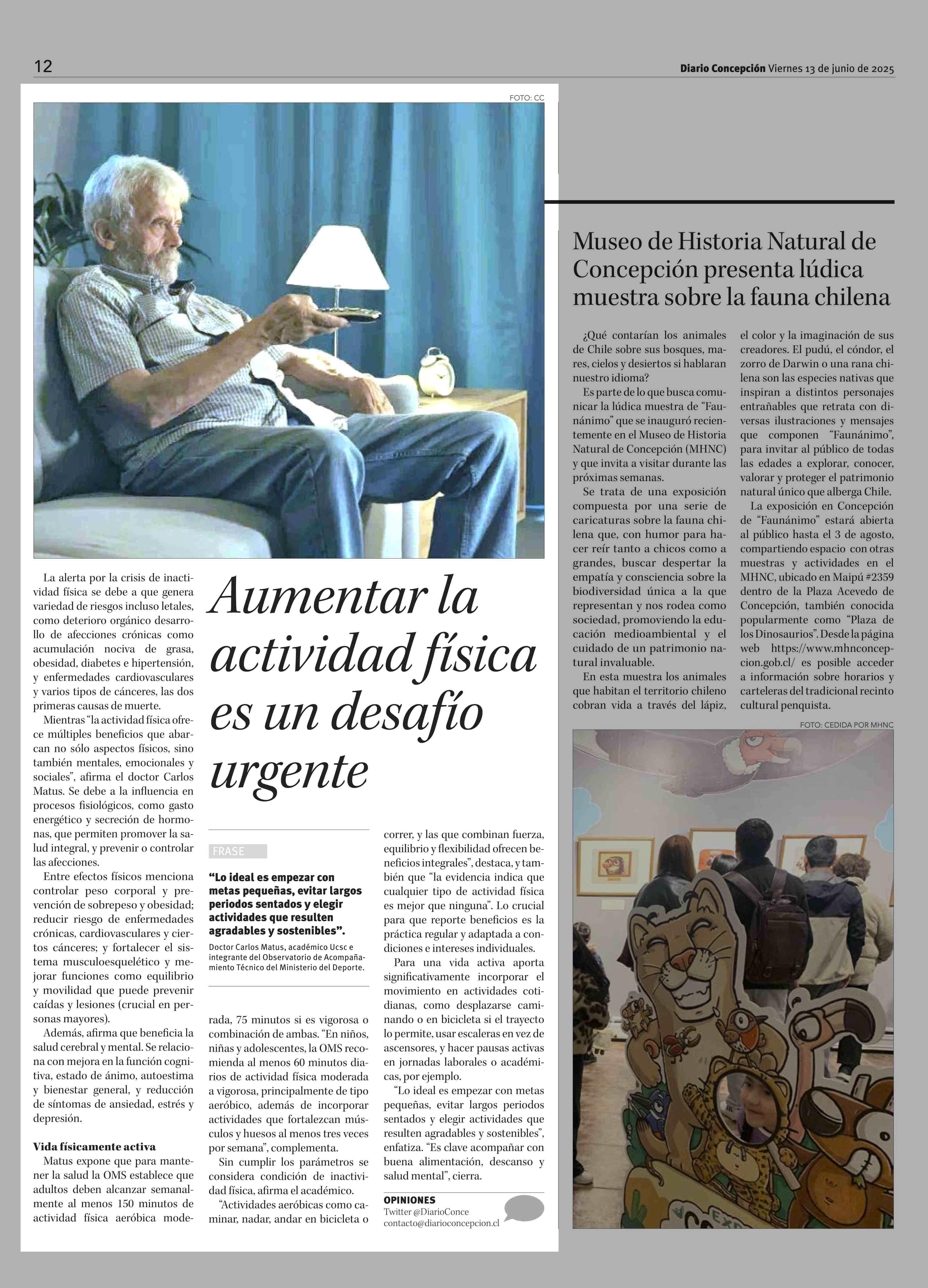 Aumentar la actividad física es un desafío urgente 13-06-2025 Diario Concepción |