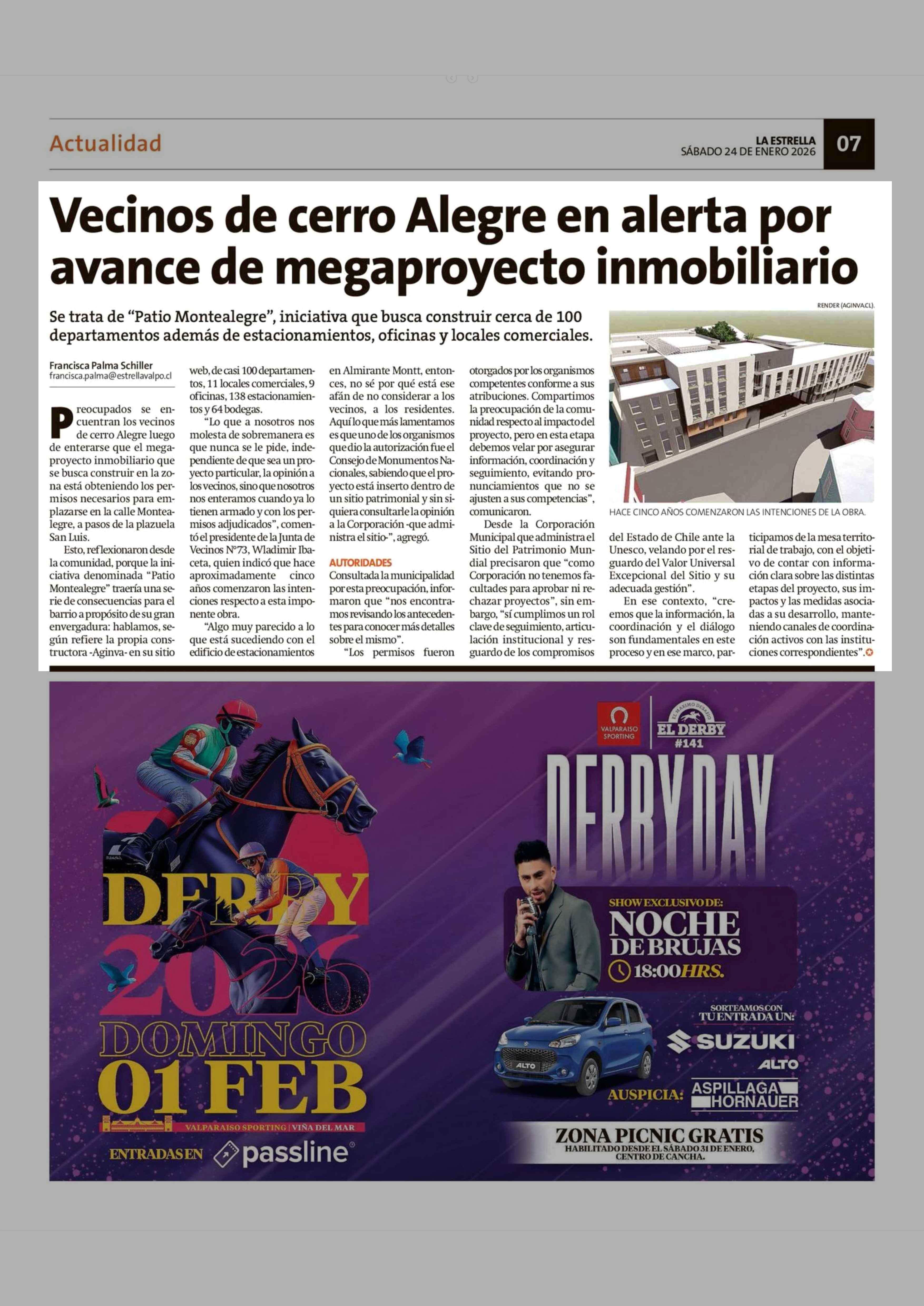 Vecinos de cerro Alegre en alerta por avance de megaproyecto inmobiliario 24-01-2026 La Estrella de Valparaíso |