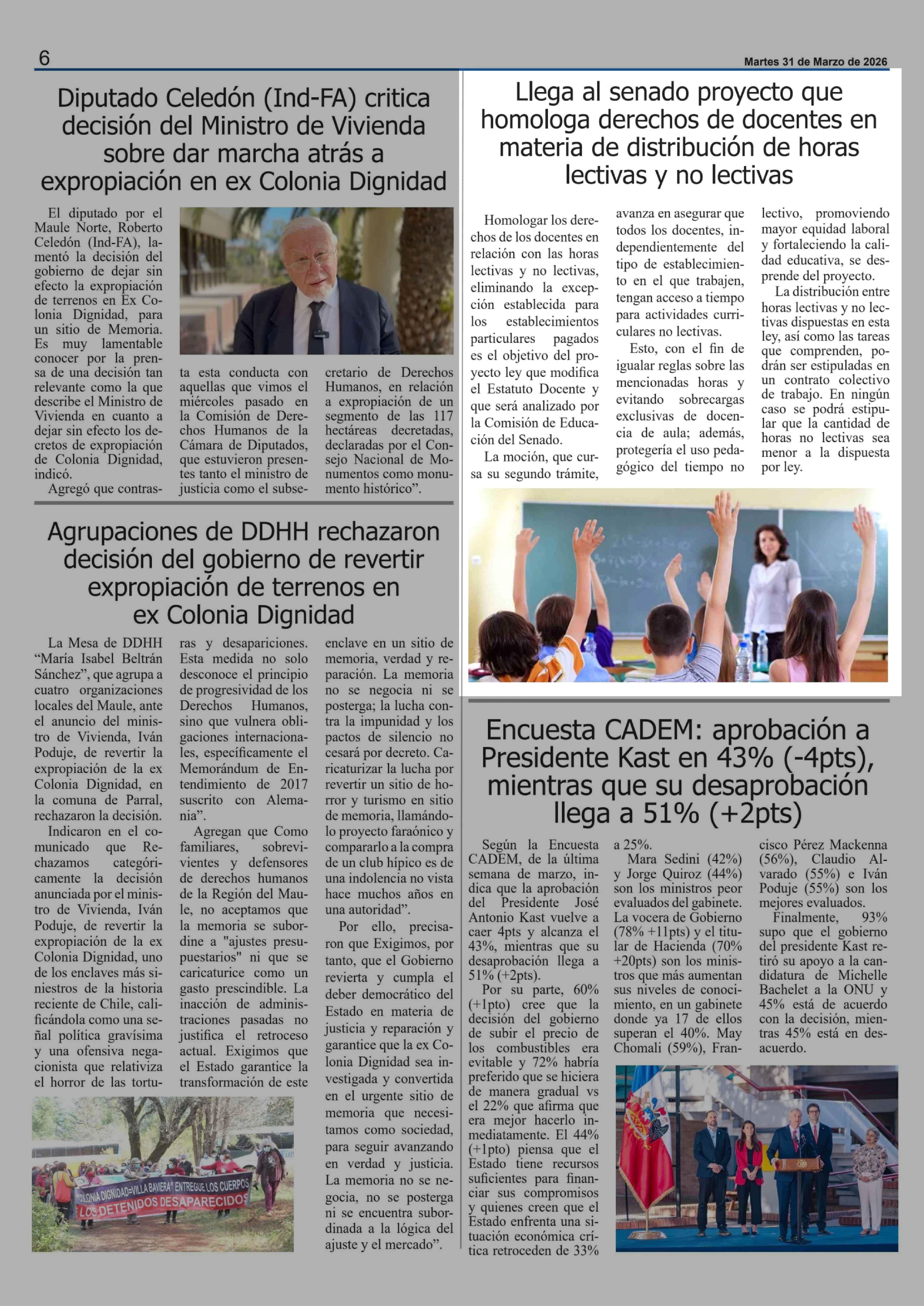 | Fecha: | 31-03-2026 | Sector: | Noticia general | Región: | Región del Maule |