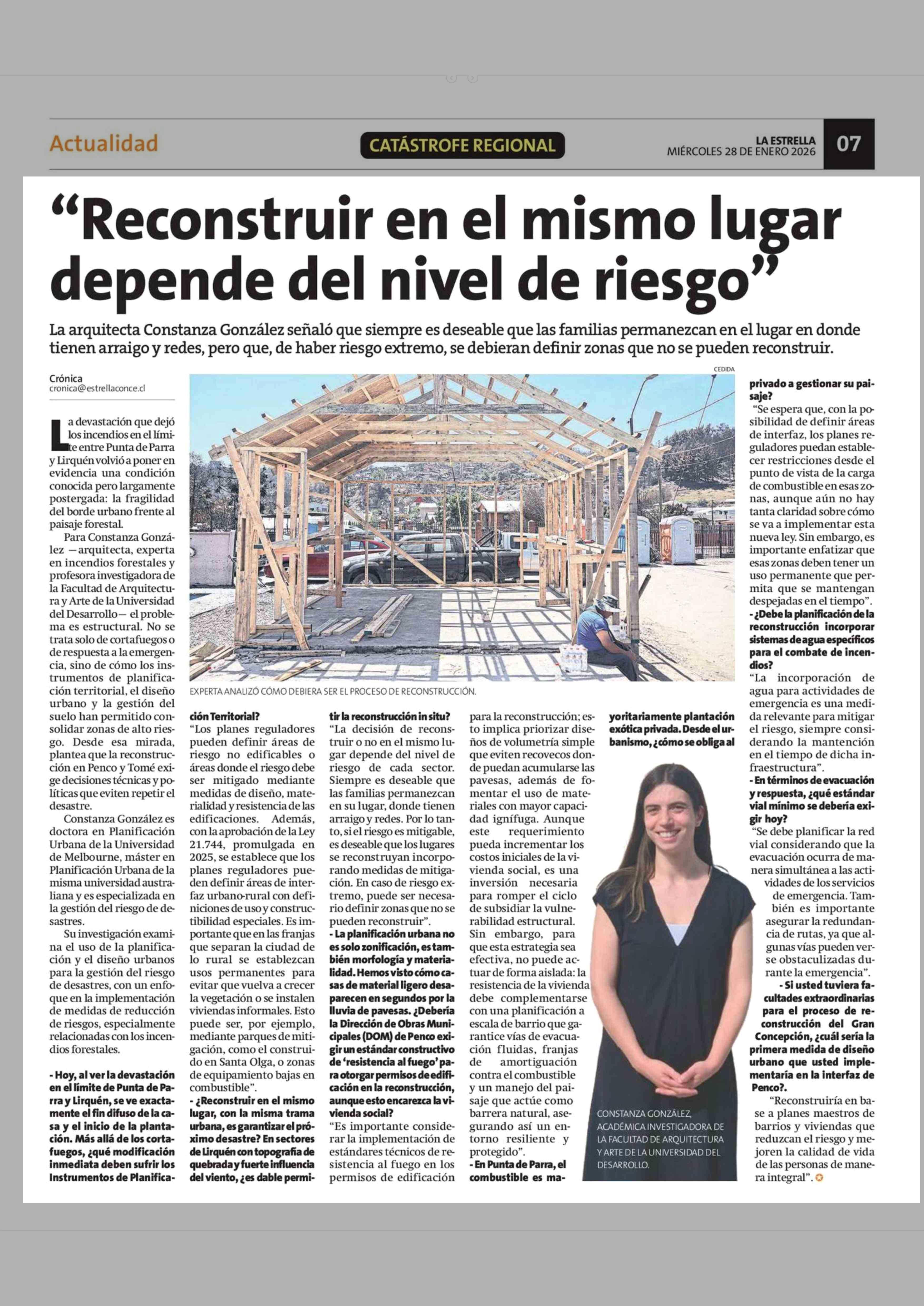 “Reconstruir en el mismo lugar depende del nivel de riesgo” 28-01-2026 La Estrella de Concepción |