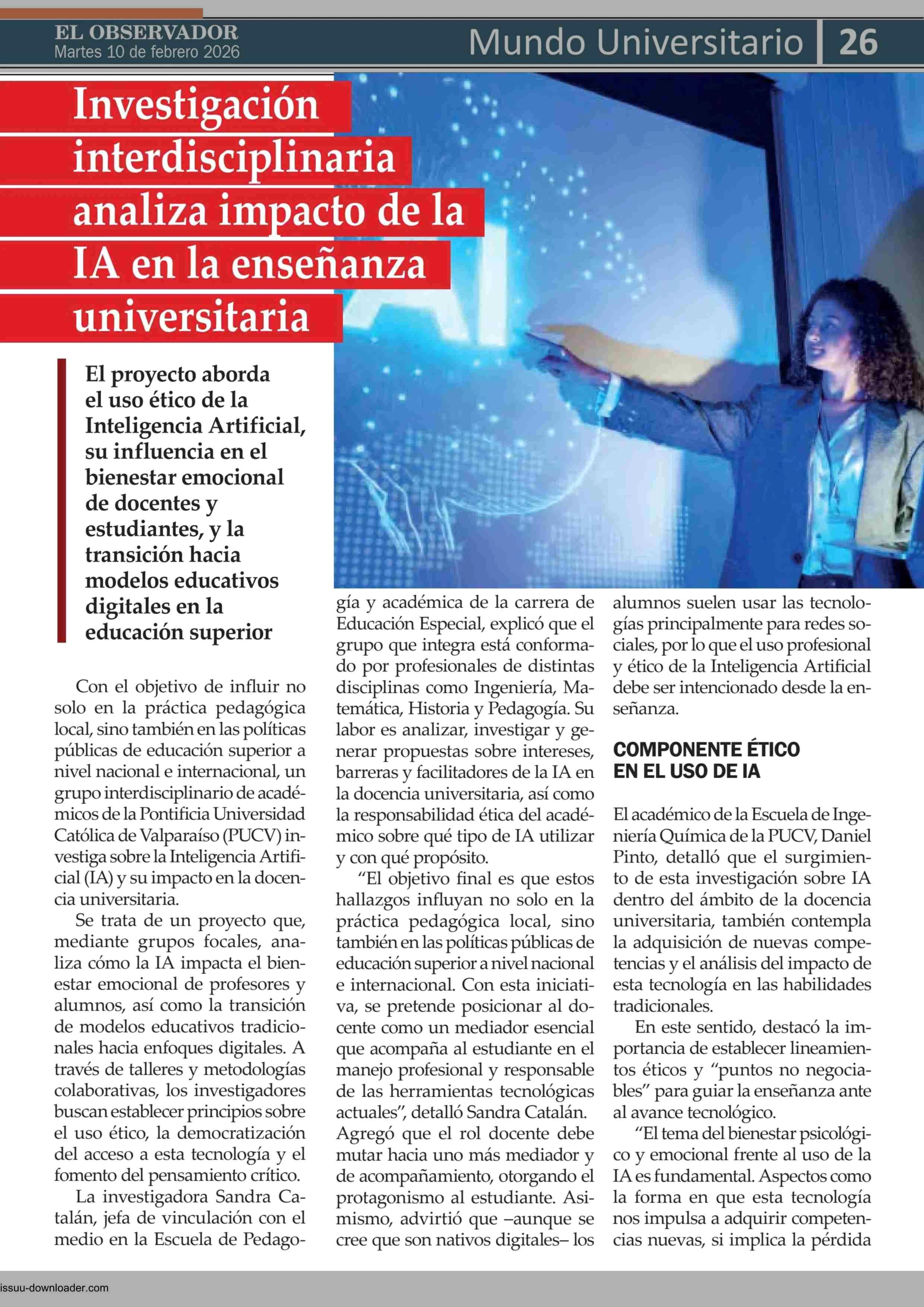 Investigación interdisciplinaria analiza impacto de la IA en la enseñanza universitaria 10-02-2026 El Observador Vespertino |
