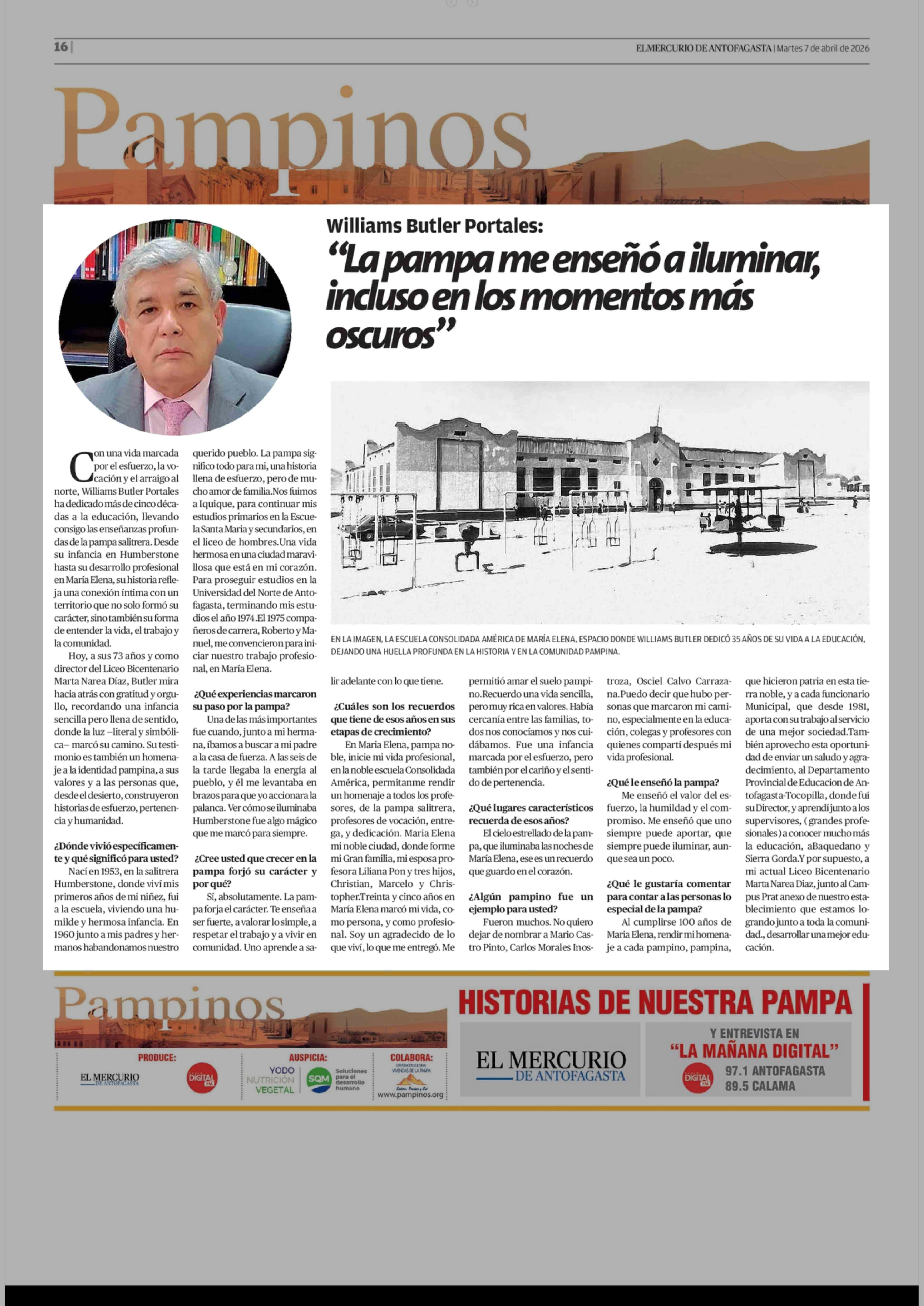 "La pampa me enseñó a iluminar, incluso en los momentos más oscuros" 07-04-2026 El Mercurio de Antofagasta |