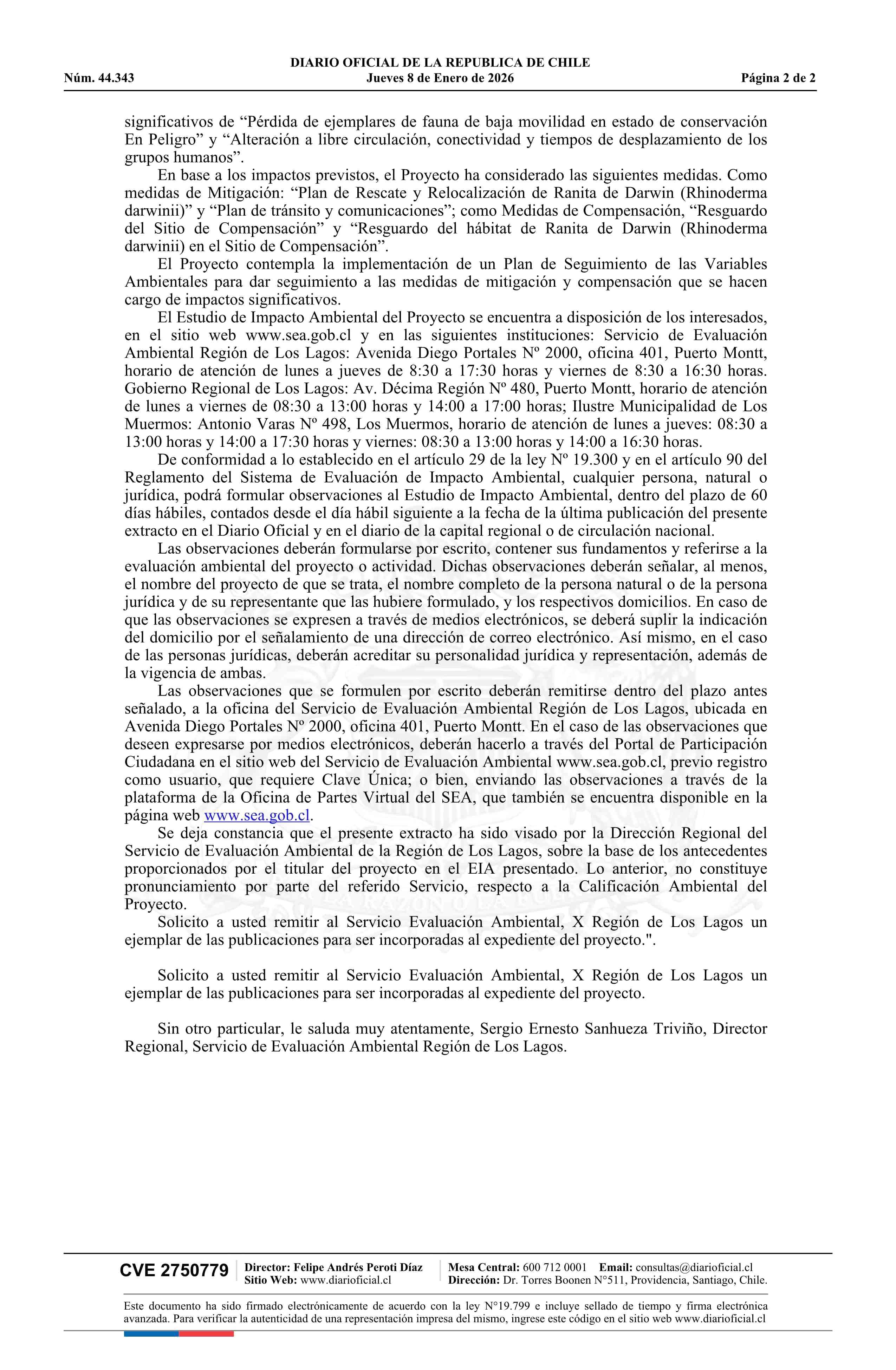 Extracto de Estudio de Impacto Ambiental proyecto Parque Eólico Mirador del Sur 08-01-2026 DIARIO OFICIAL CHILE - BOLETÍN OFICIAL DE MINERÍA |