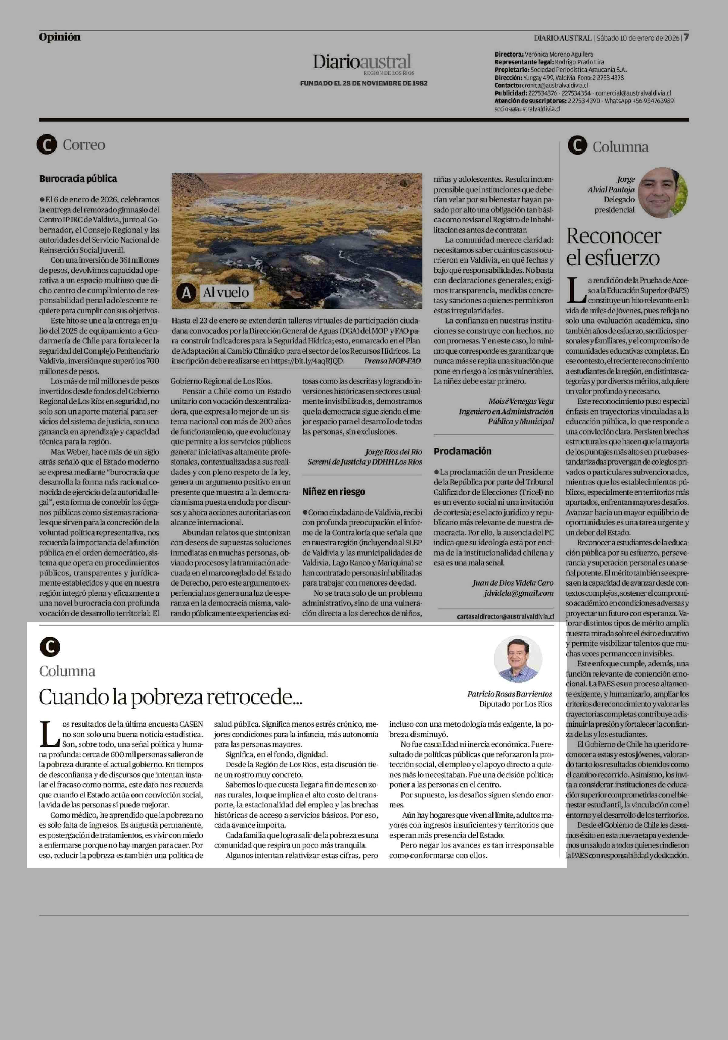 Columnas de Opinión: Cuando la pobreza retrocede ... 10-01-2026 Diario Austral Región de Los Ríos |