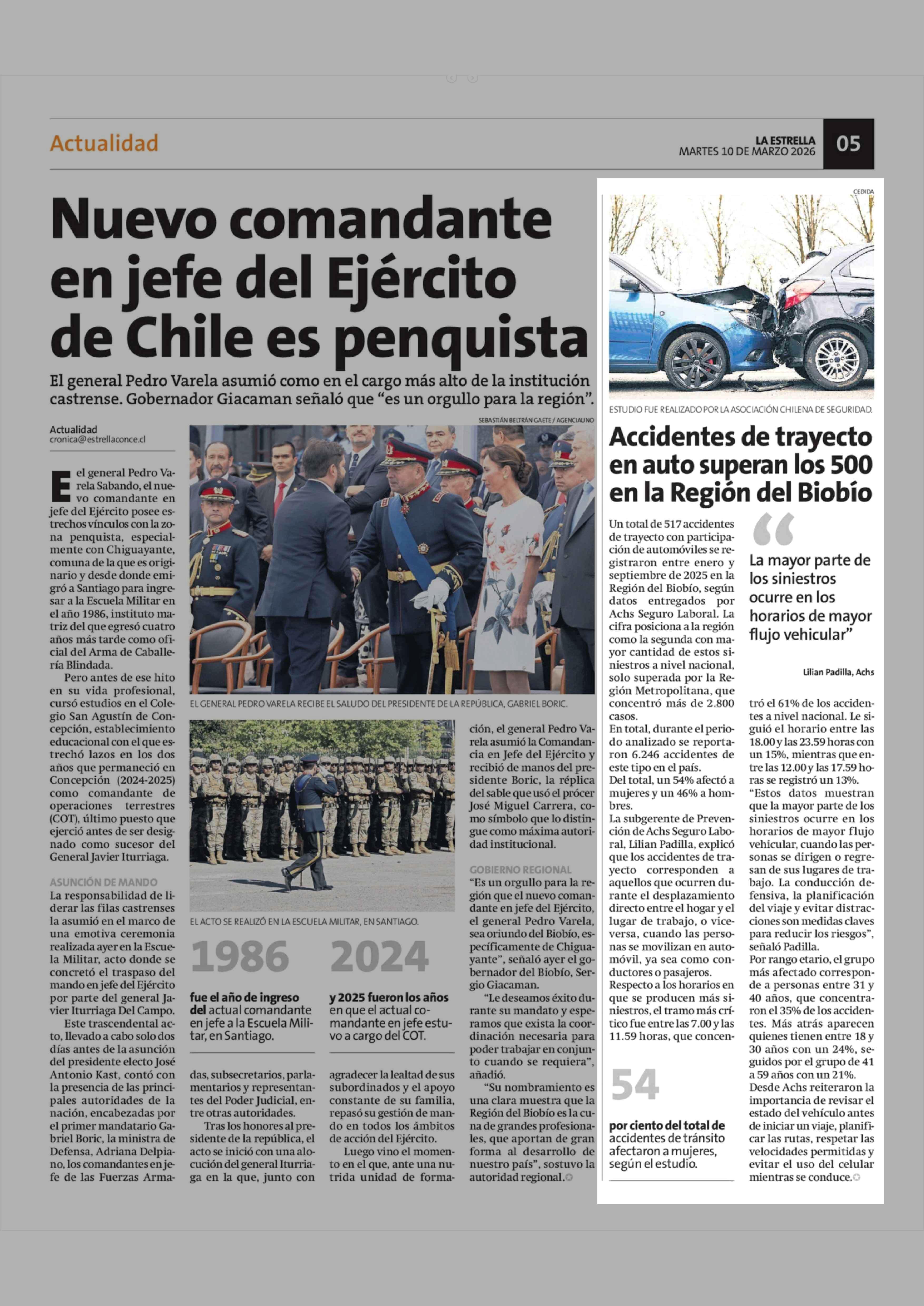 Accidentes de trayecto en auto superan los 500 en la Región del Biobio 10-03-2026 La Estrella de Concepción |