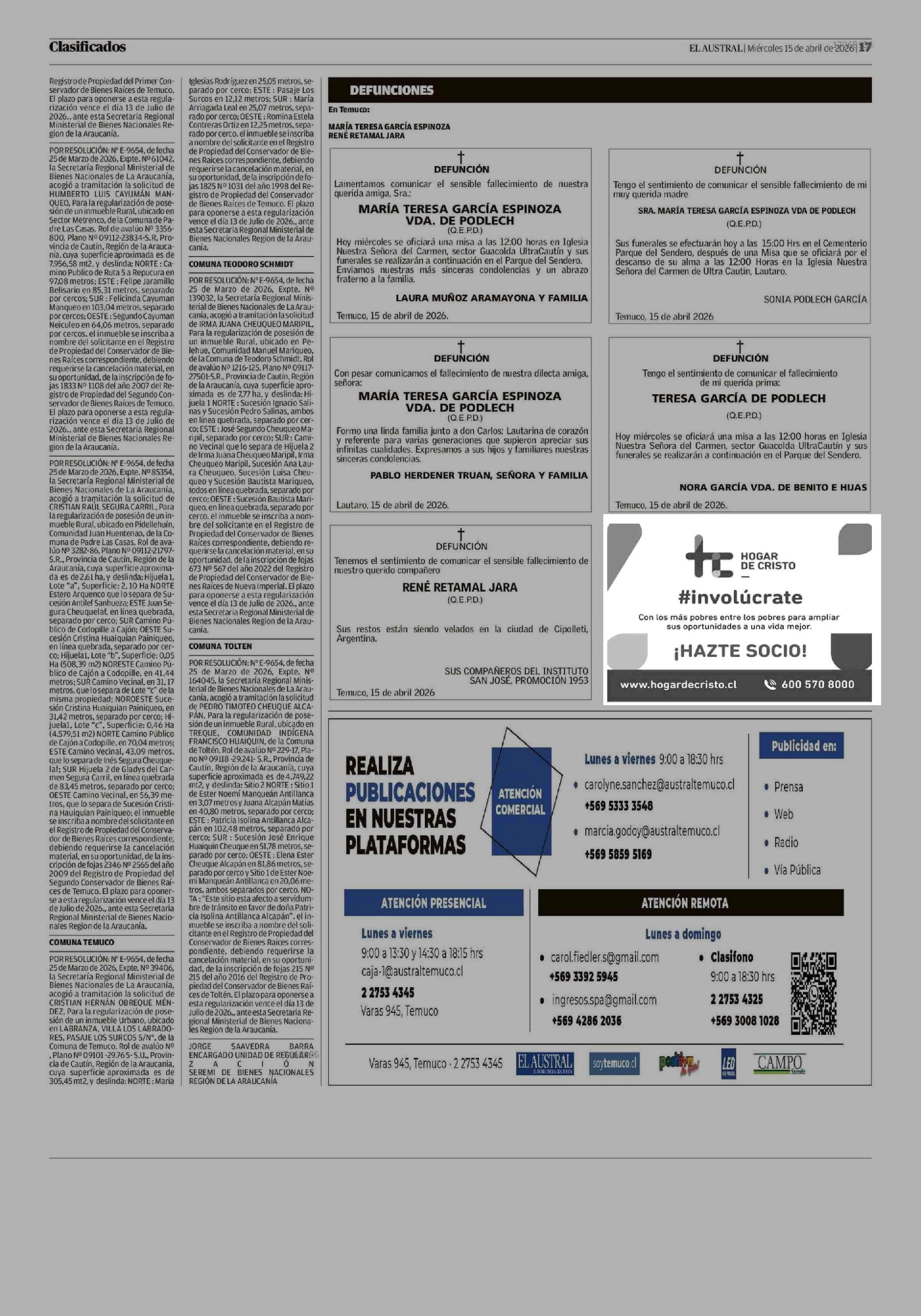 | Fecha: | 15-04-2026 | Sector: | Aviso Ayuda Social | Región: | Región de la Araucanía |