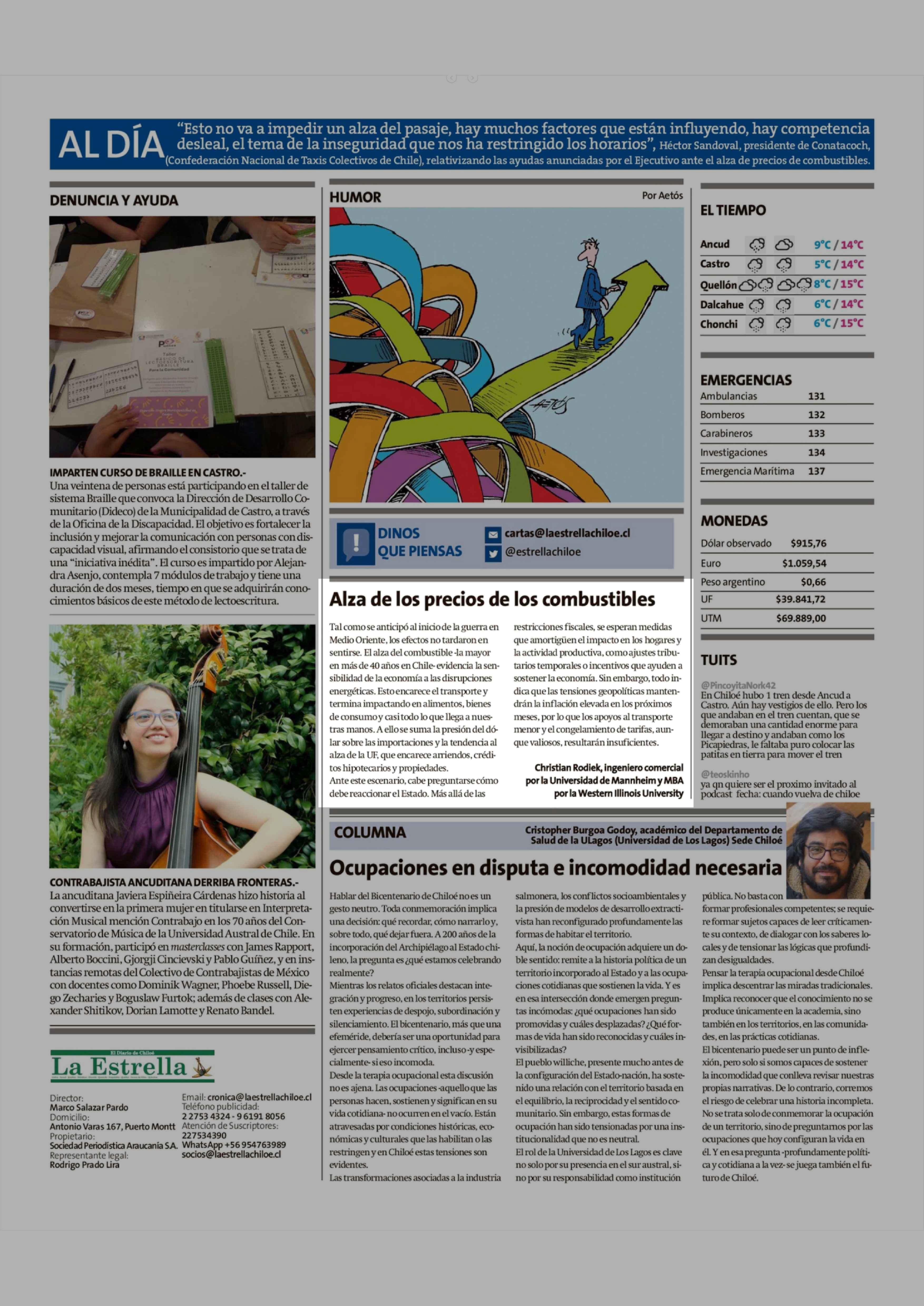 Columnas de Opinión: Alza de los precios de los combustibles 25-03-2026 La Estrella de Chiloé |