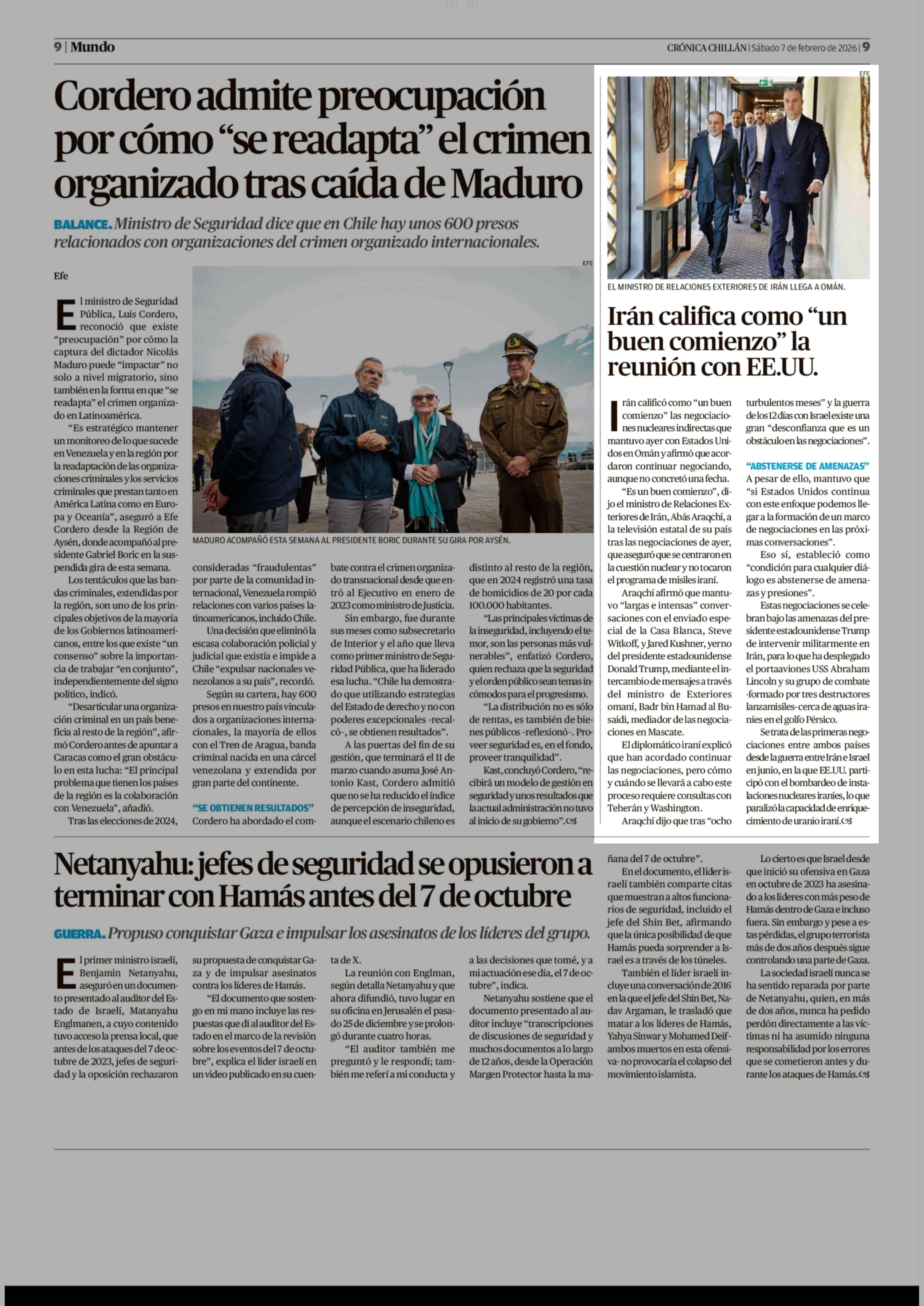Irán califica como "un buen comienzo" la reunión con EE.UU. 07-02-2026 Crónica de Chillán |