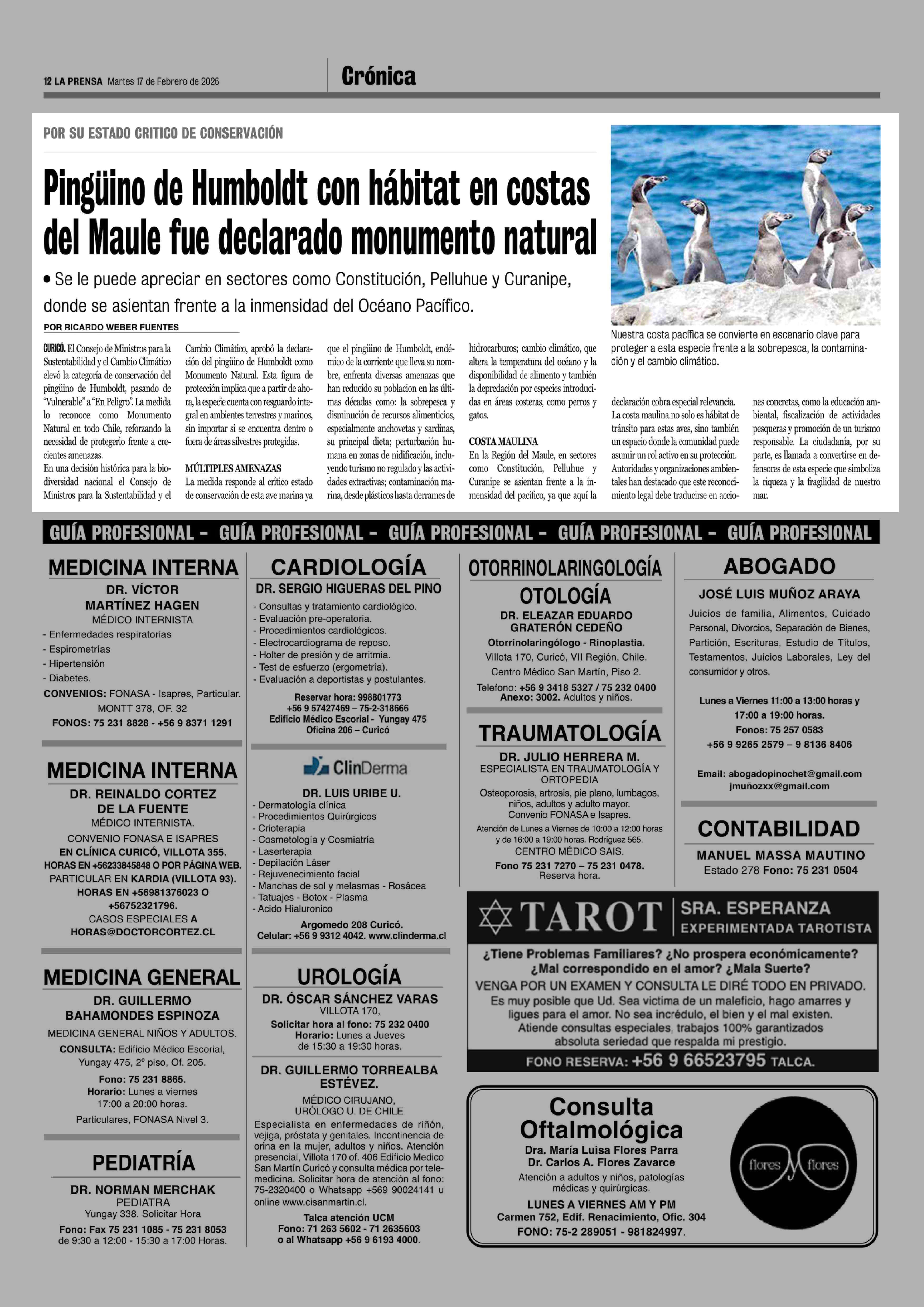 Fuente: La Prensa de Curicó (La Prensa de Curicó) Página(s): 12