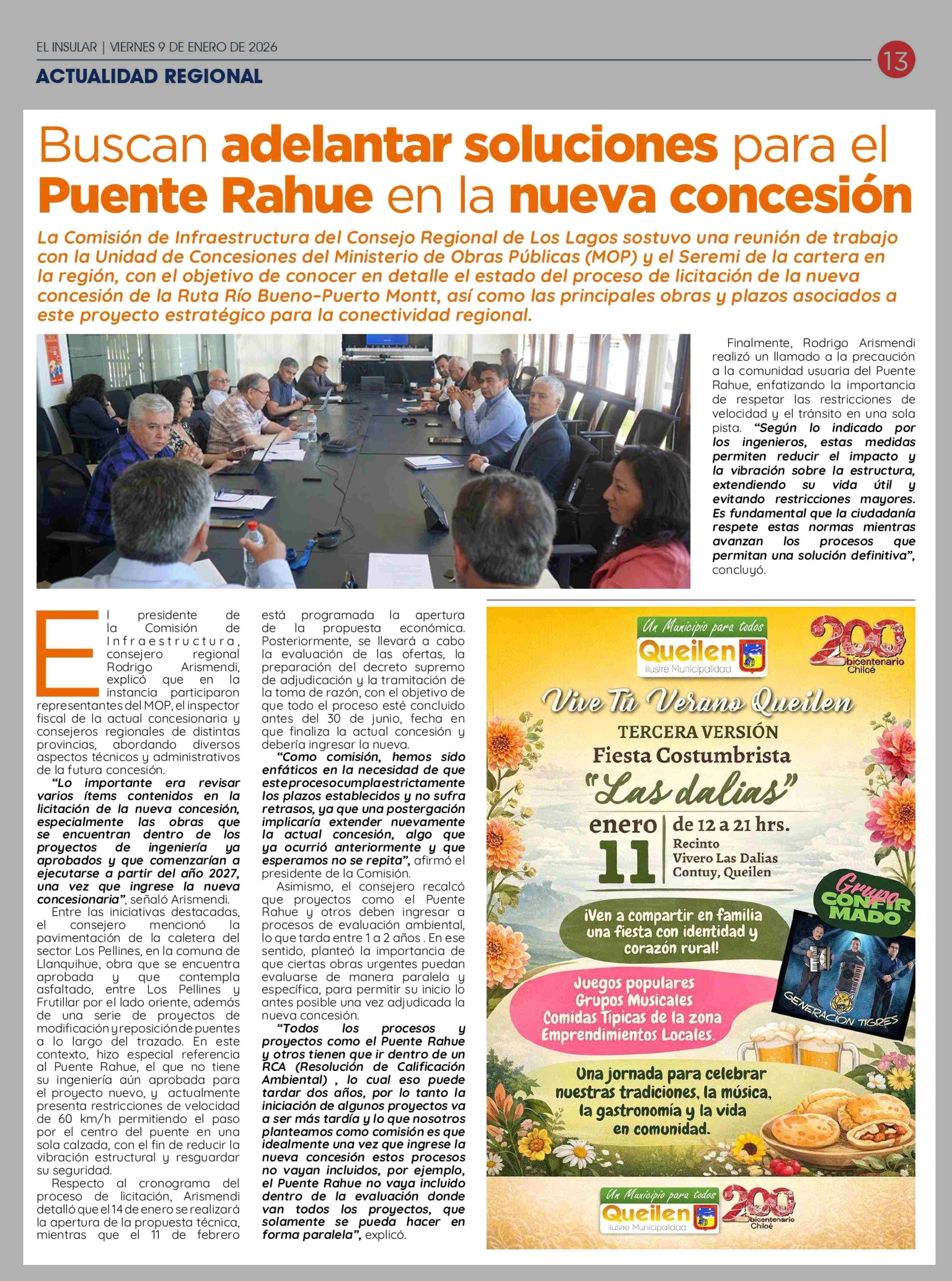 Buscan adelantar soluciones para el Puente Rahue en la nueva concesión 09-01-2026 El Insular |