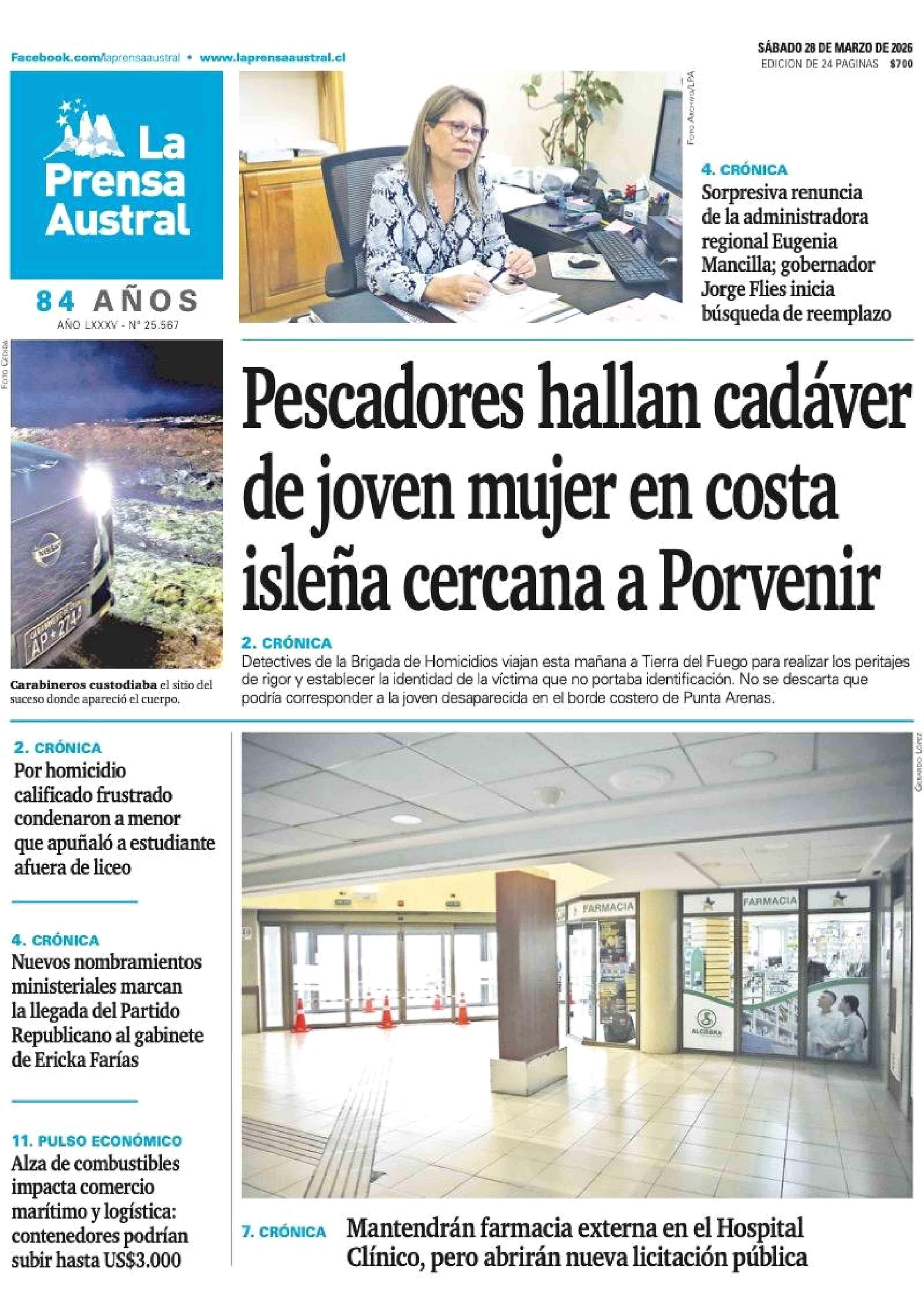 PORTADA LA PRENSA AUSTRAL CHILE 28-03-2026 La Prensa Austral |