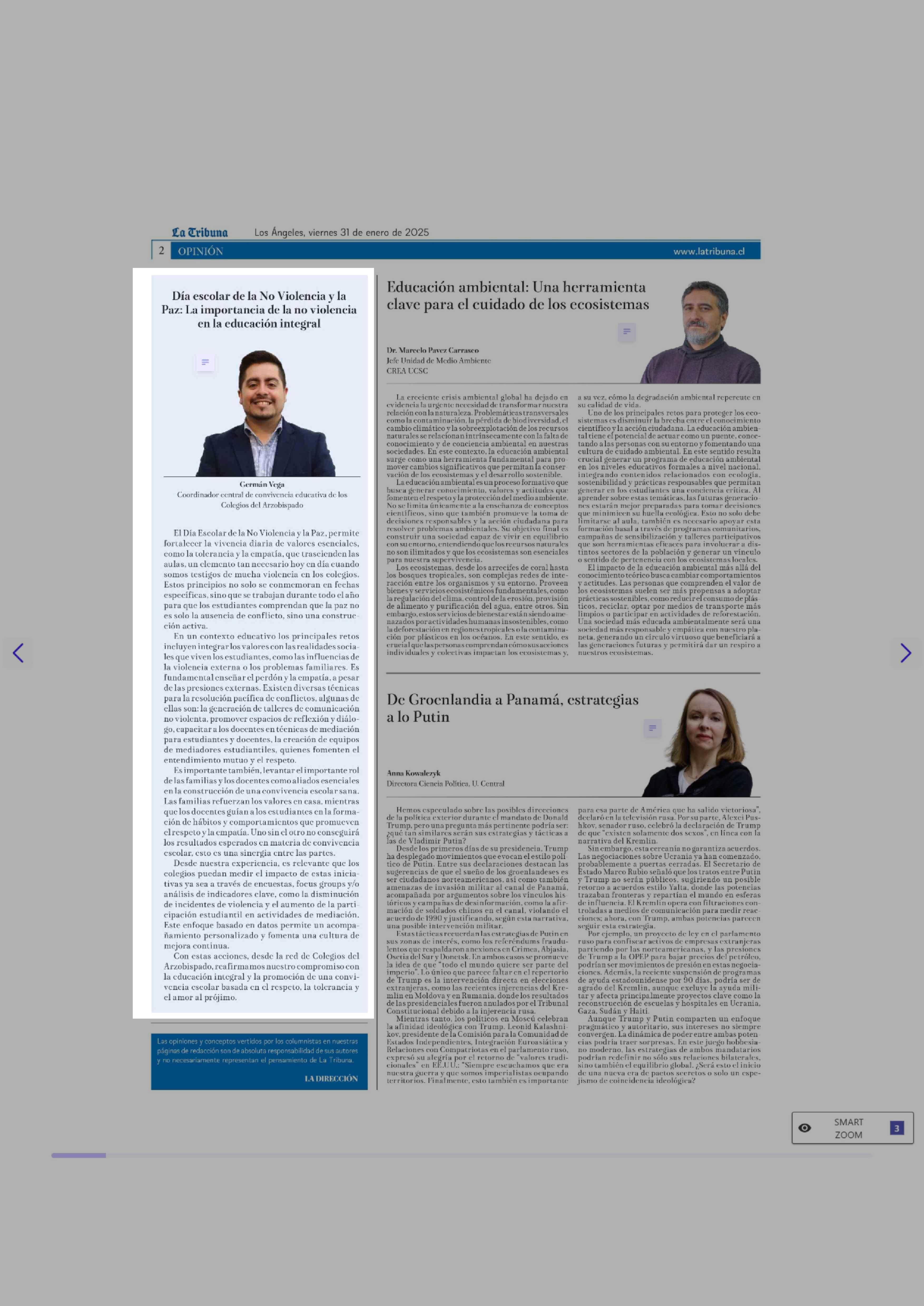 COLUMNAS DE OPINIÓN: La importancia de la no violencia en la educación integral 31-01-2025 La Tribuna |