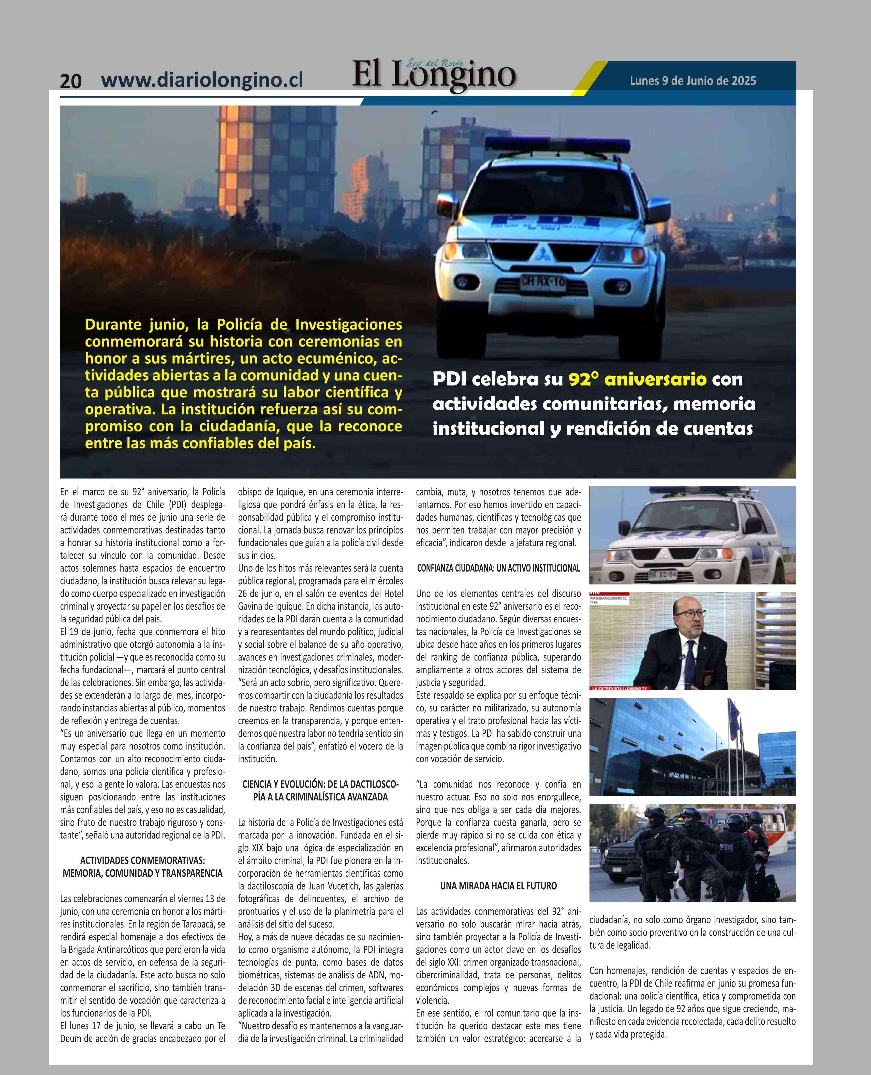 | Título: | PDI celebra su 92° aniversario con actividades comunitarias, memoria institucional y rendición de cuentas |