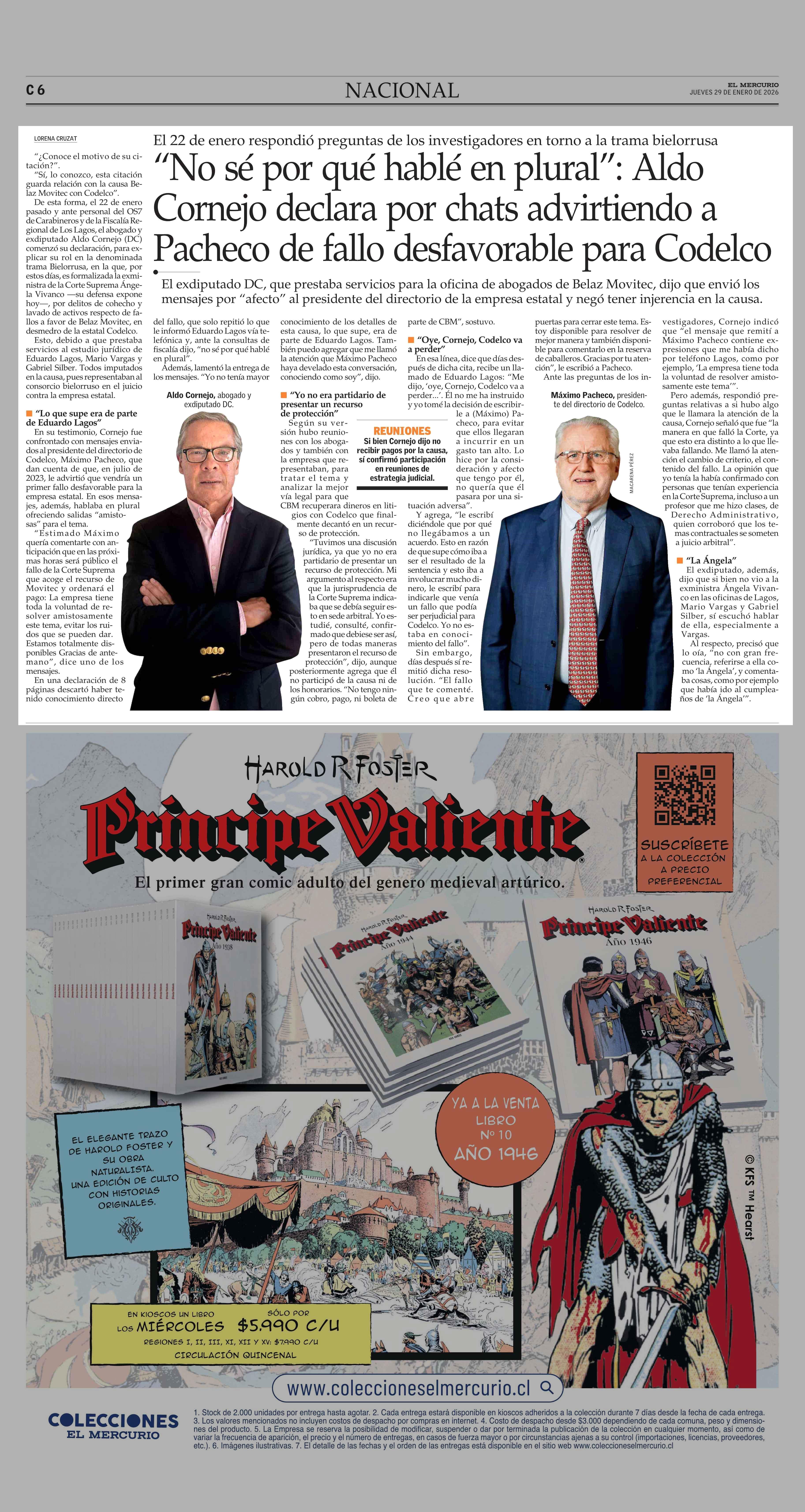 “No sé por qué hablé en plural”: Aldo Cornejo declara por chats advirtiendo a Pacheco de fallo desfavorable para Codelco 29-01-2026 El Mercurio |