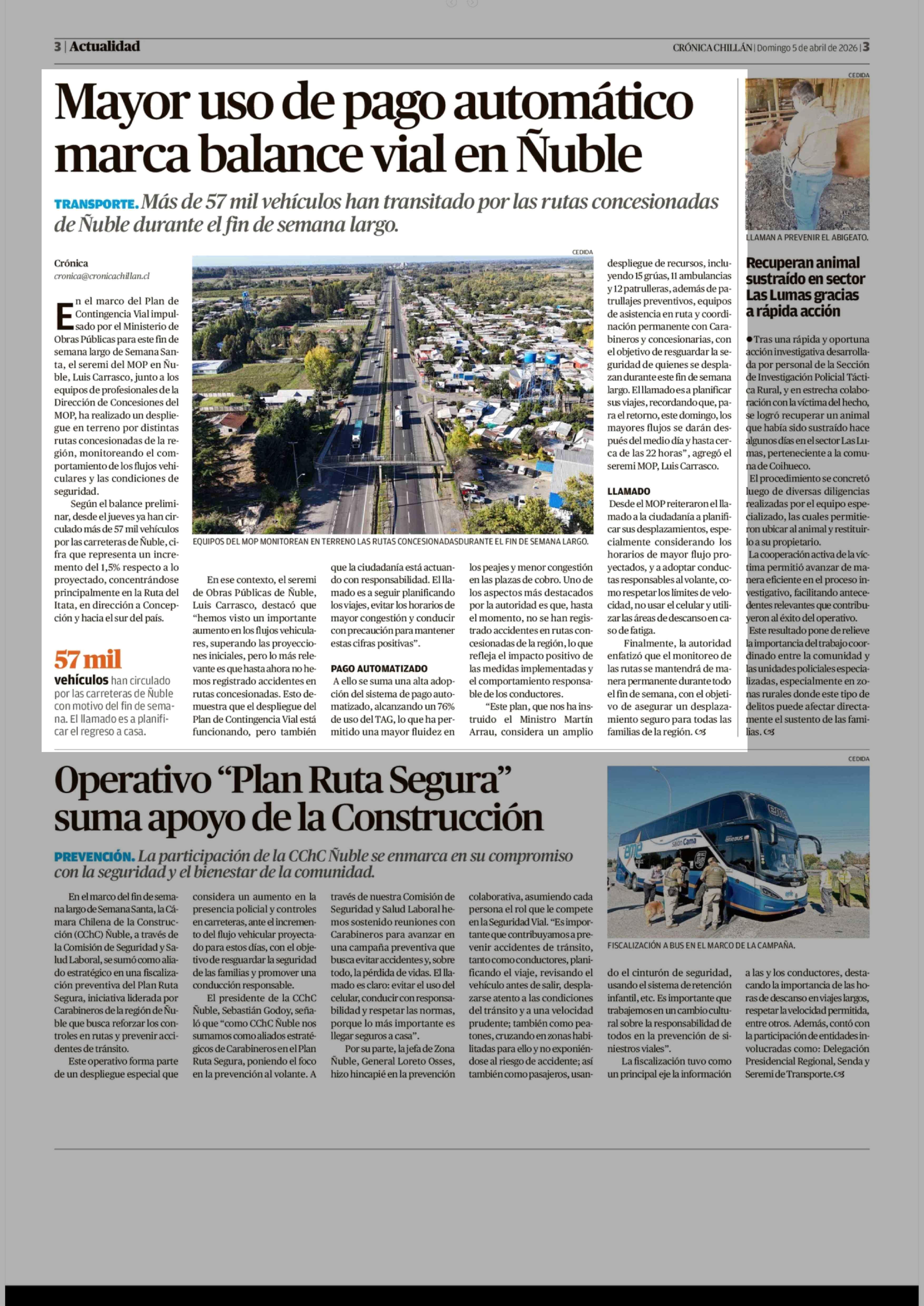 Mayor uso de pago automático marca balance vial en Nuble 05-04-2026 Crónica de Chillán |