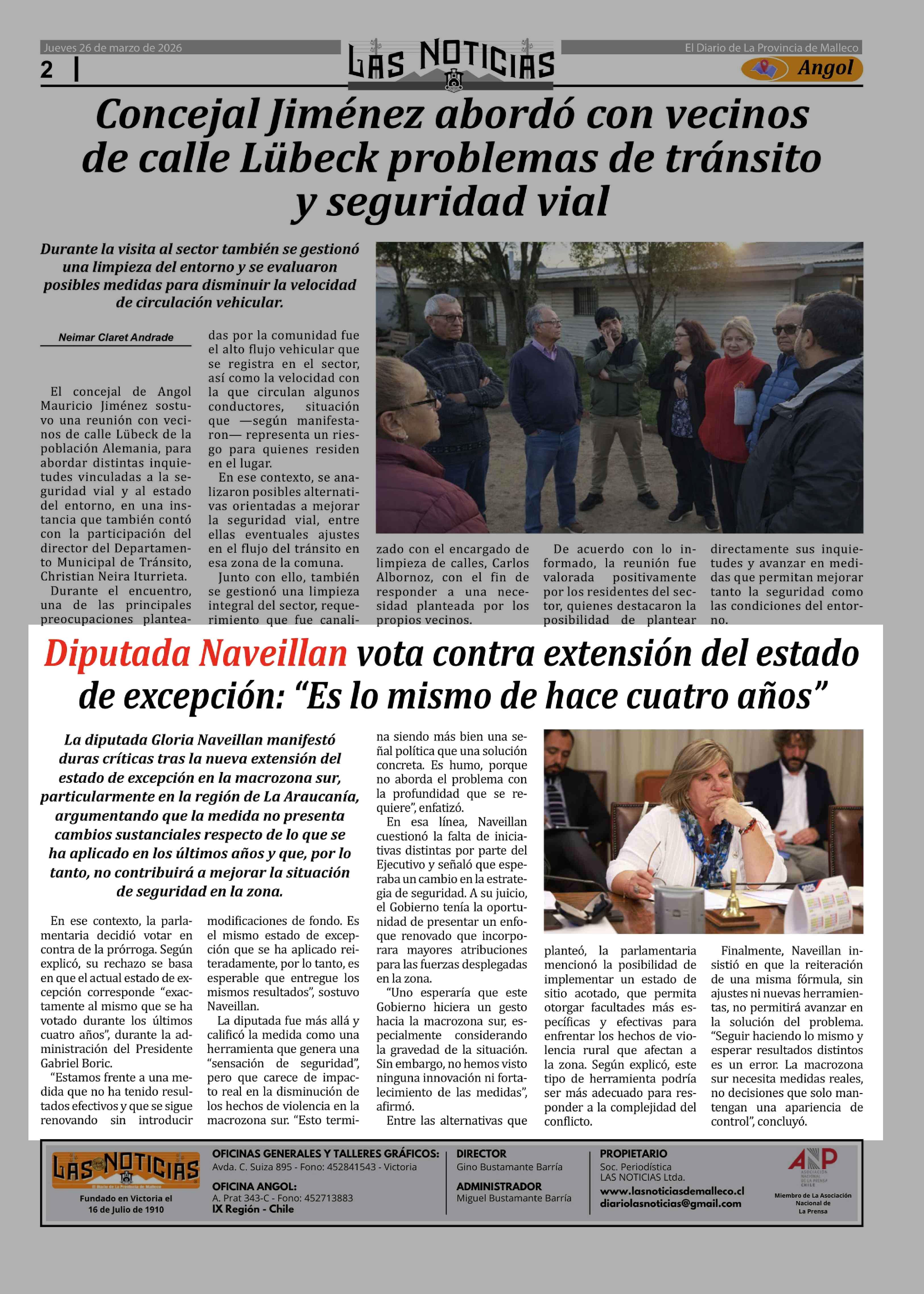 Diputada Naveillan vota contra extensión del estado de excepción: "Es lo mismo de hace cuatro años" 26-03-2026 Las Noticias |