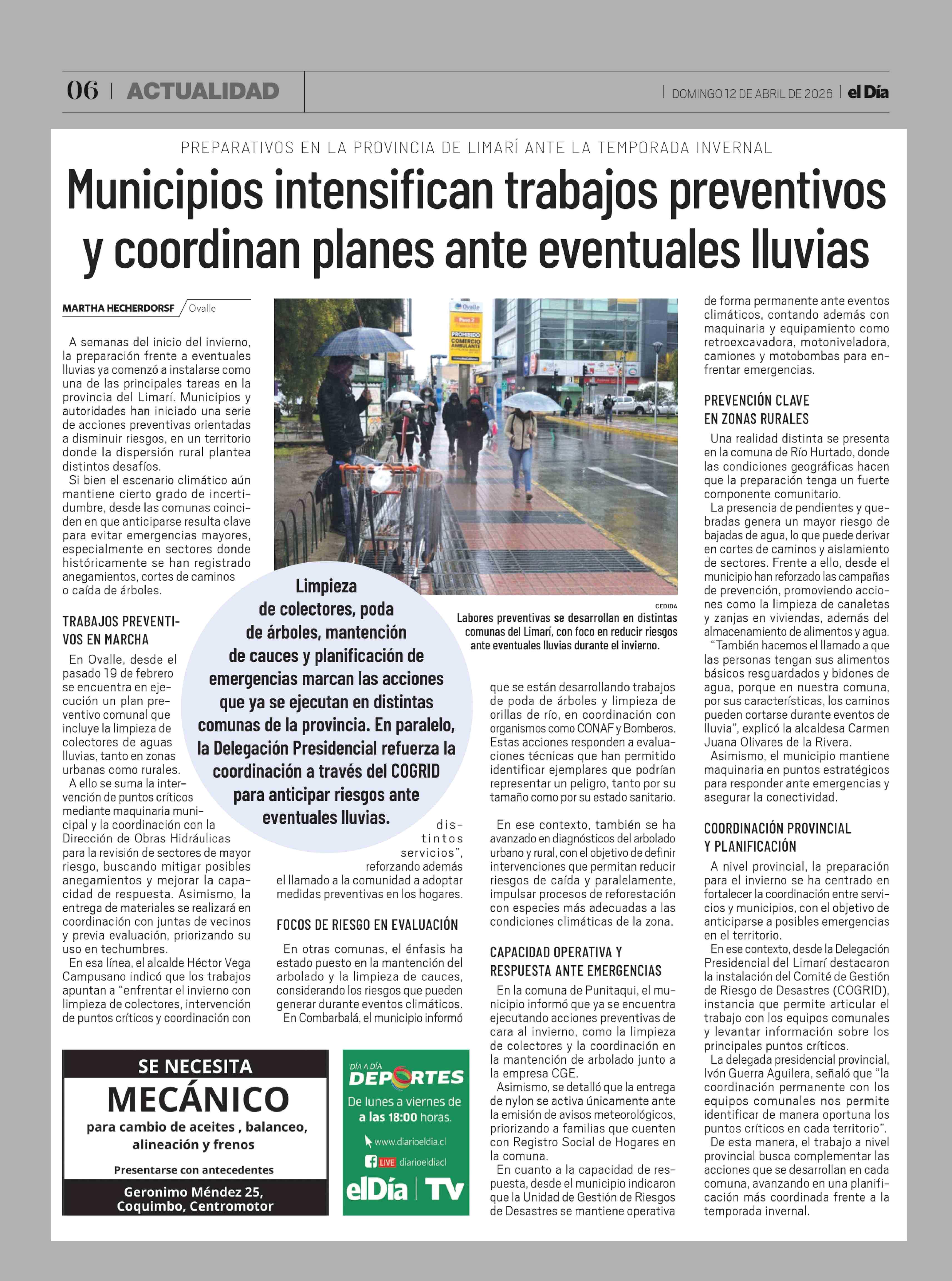 | Fecha: | 12-04-2026 | Sector: | Noticia general | Región: | Región de Coquimbo |