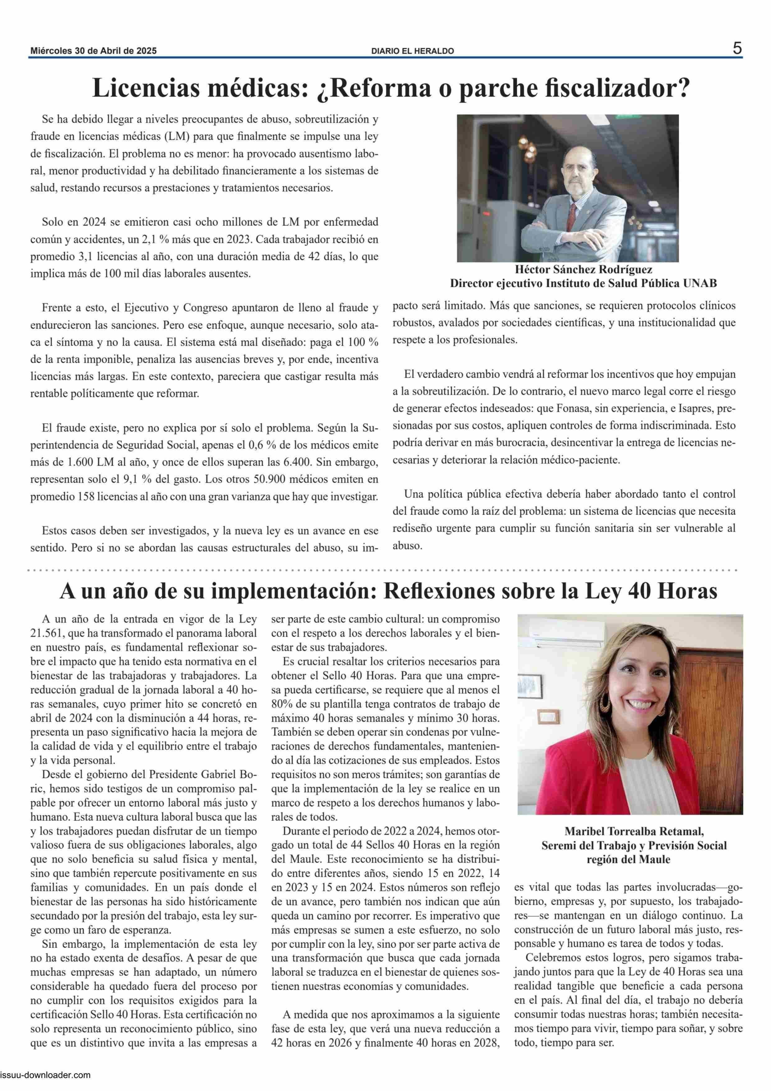 COLUMNAS DE OPINIÓN: Licencias médicas: ¿Reforma o parche fiscalizador? 30-04-2025 El Heraldo |