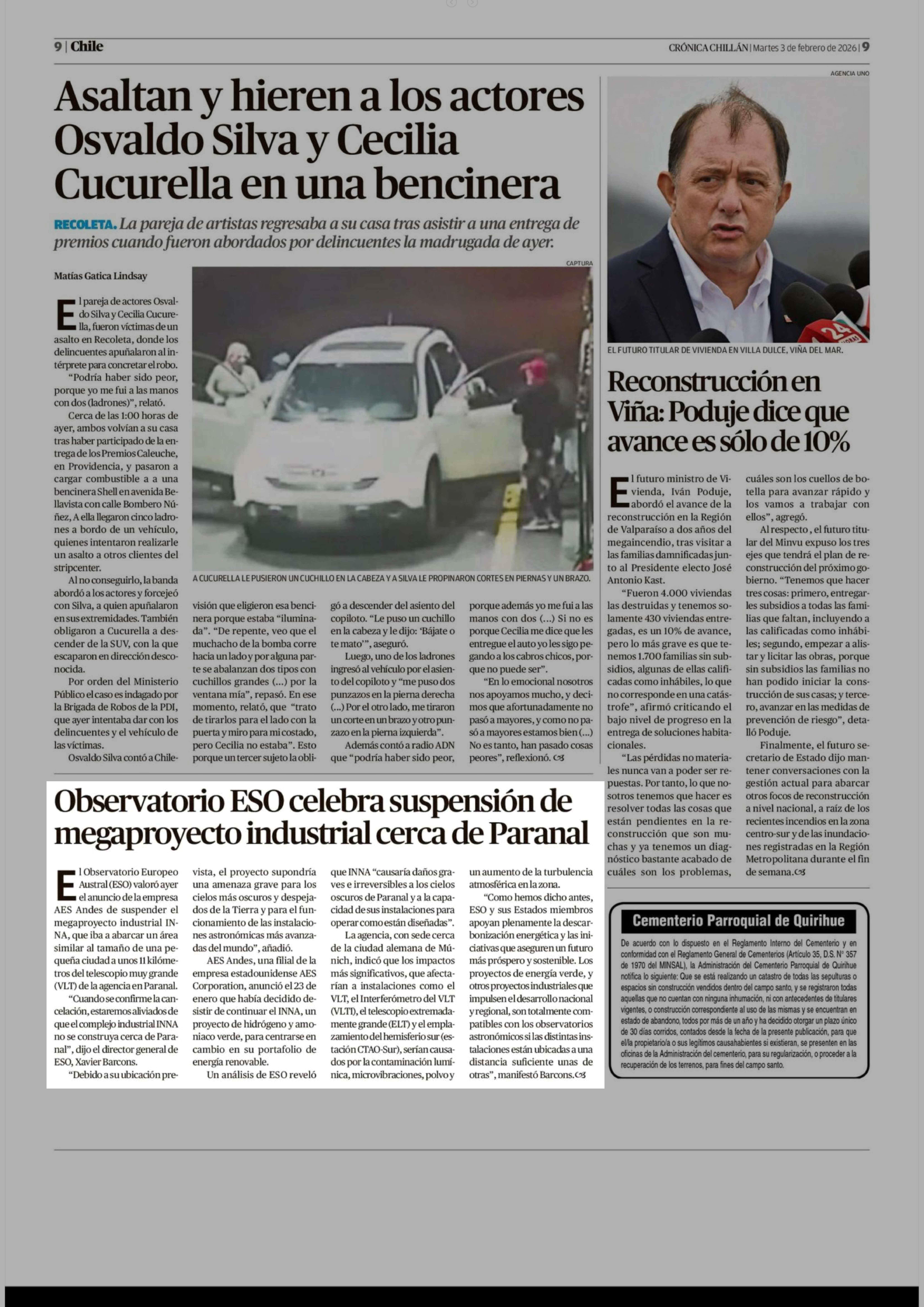 | Fecha: | 03-02-2026 | Sector: | Noticia general | Región: | Región del Ñuble |