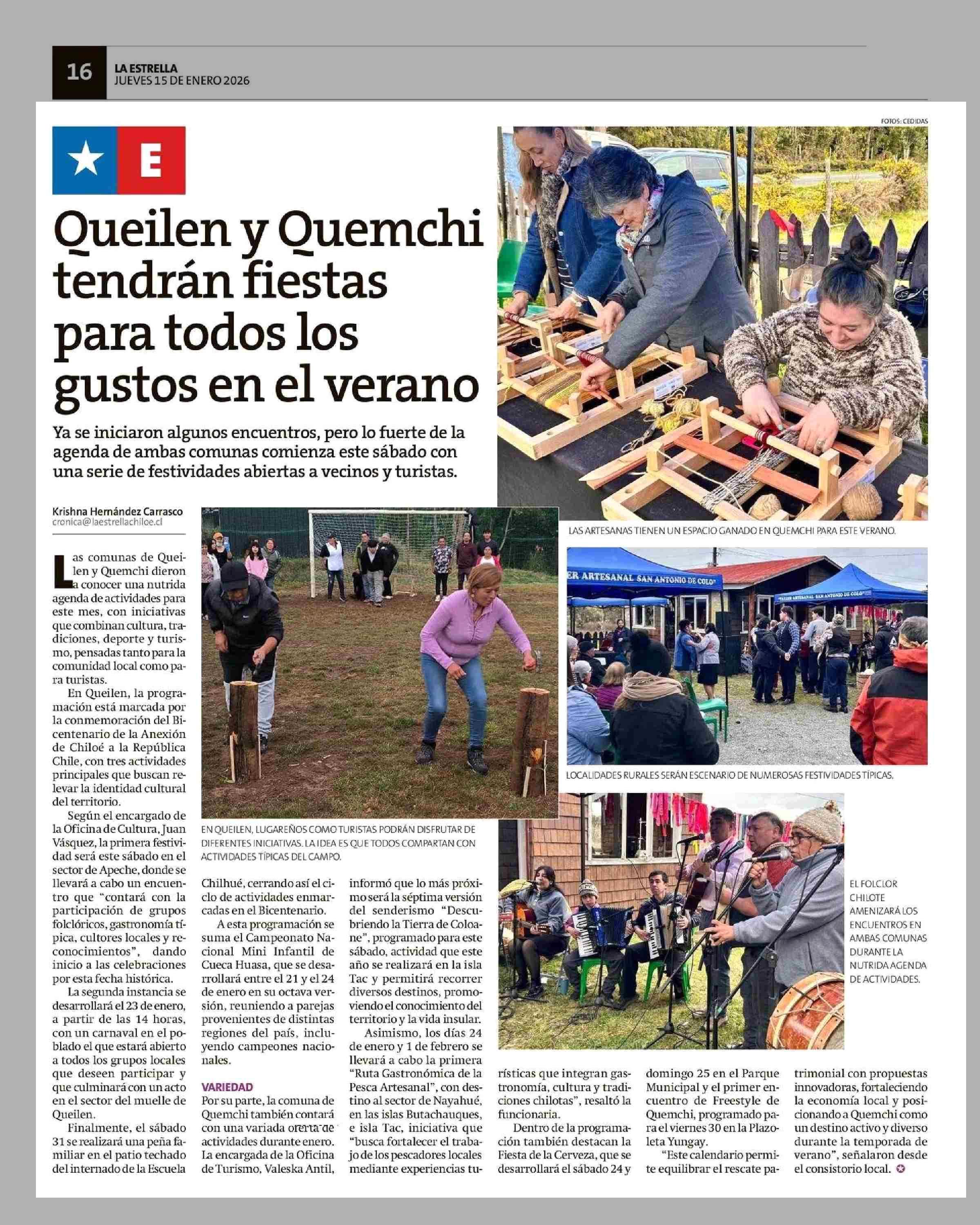 Queilen y Ouemchi tendrán fiestas para todos los gustos en el verano 15-01-2026 La Estrella de Chiloé |