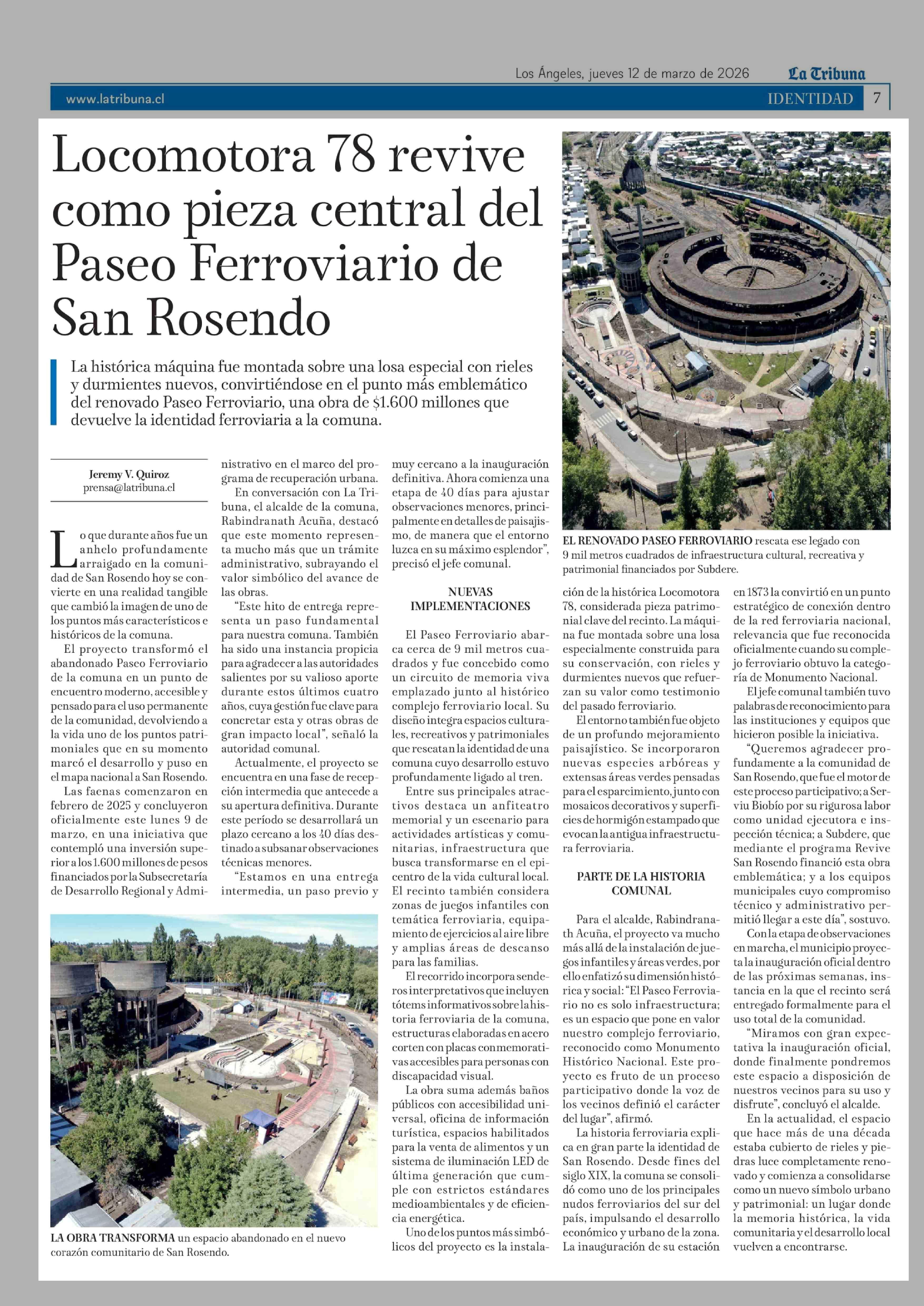 Título: Locomotora 78 revive como pieza central del Paseo Ferroviario de San Rosendo