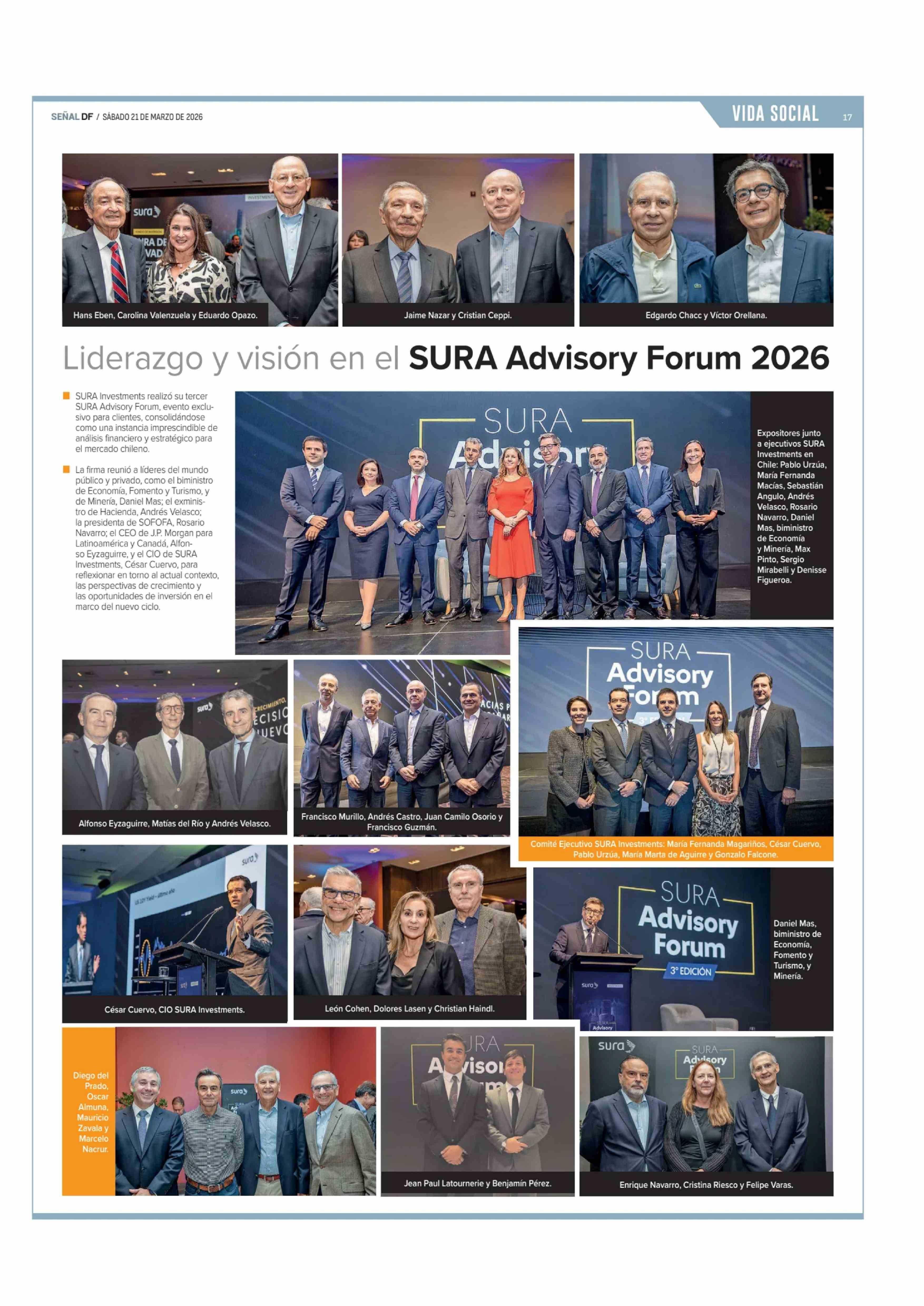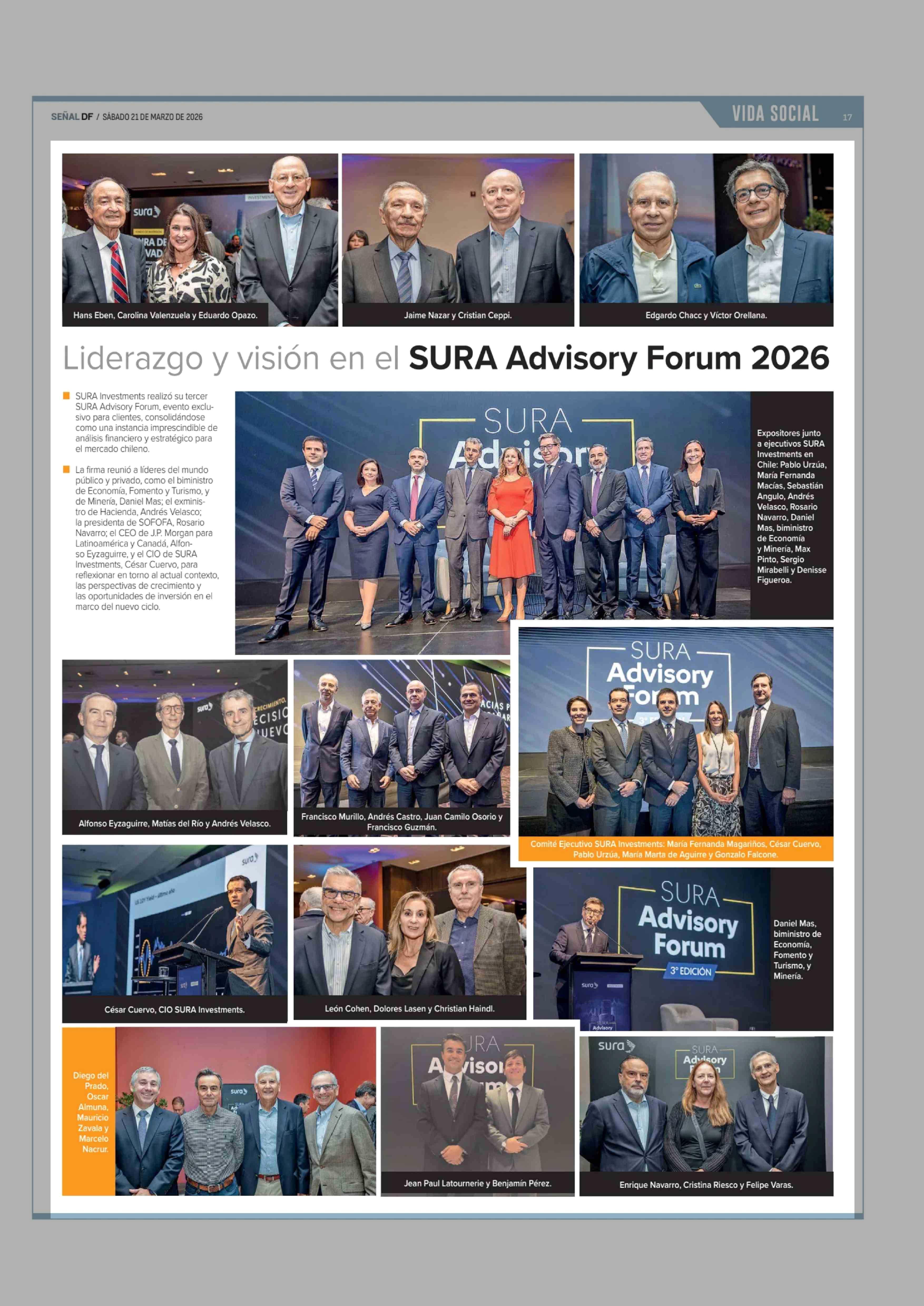 Liderazgo y visión en el SURA Advisory Forum 2026 21-03-2026 Diario Financiero |