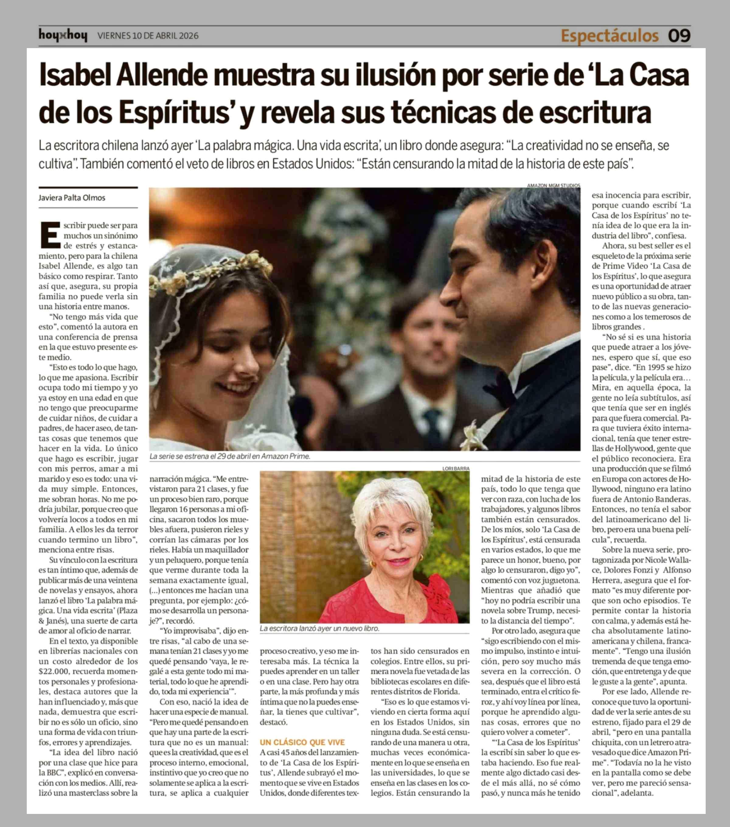 Isabel Allende muestra su ilusión por serie de 'La Casa de los Espíritus' y revela sus técnicas de escritura 10-04-2026 Hoy x Hoy |