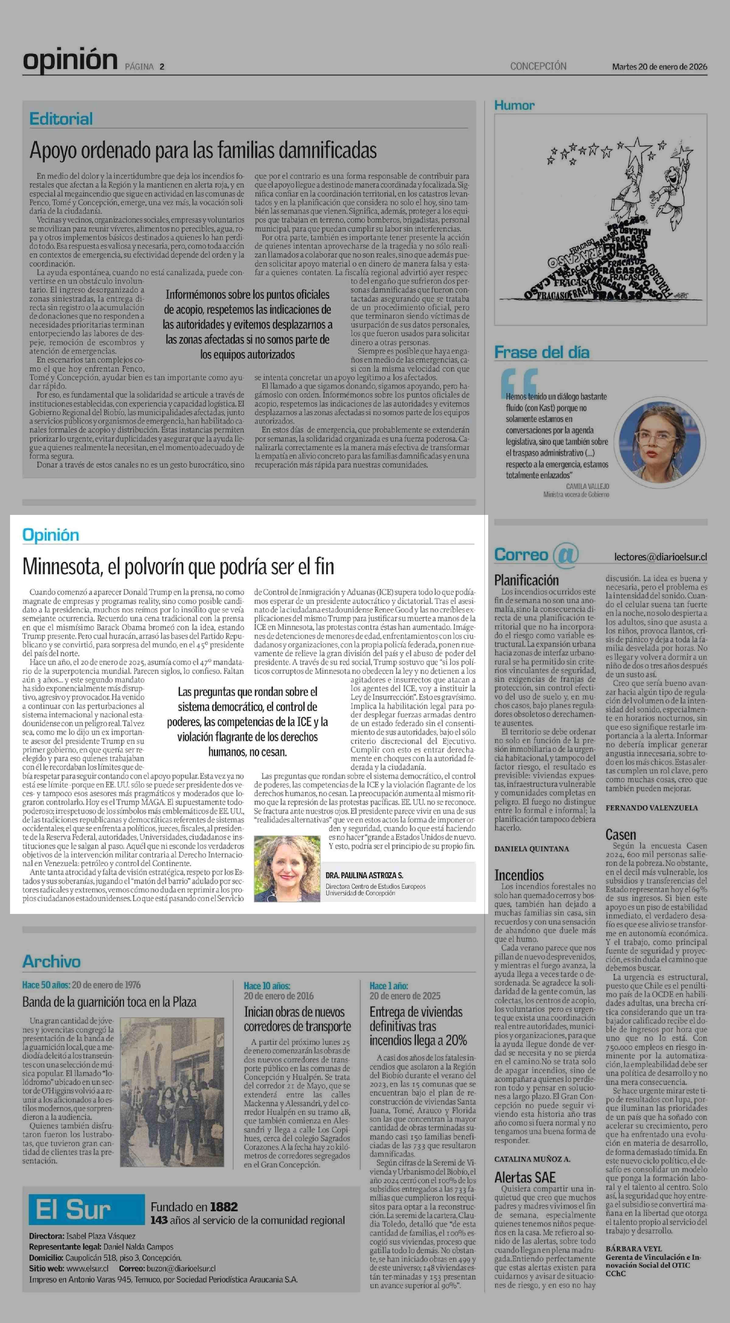 | Fecha: | 20-01-2026 | Sector: | Columnas de Opinión | Región: | Región del Bío-Bío |
