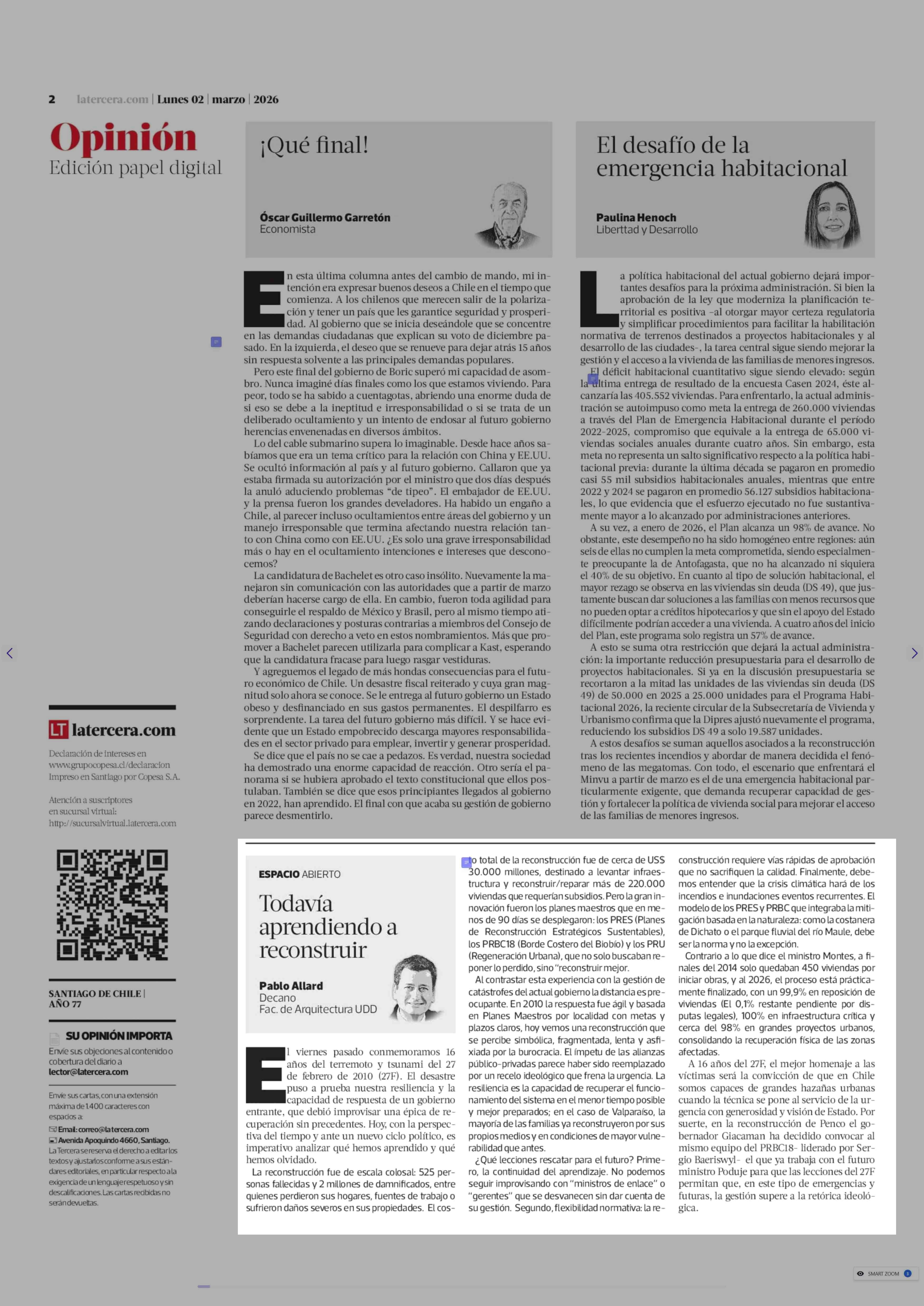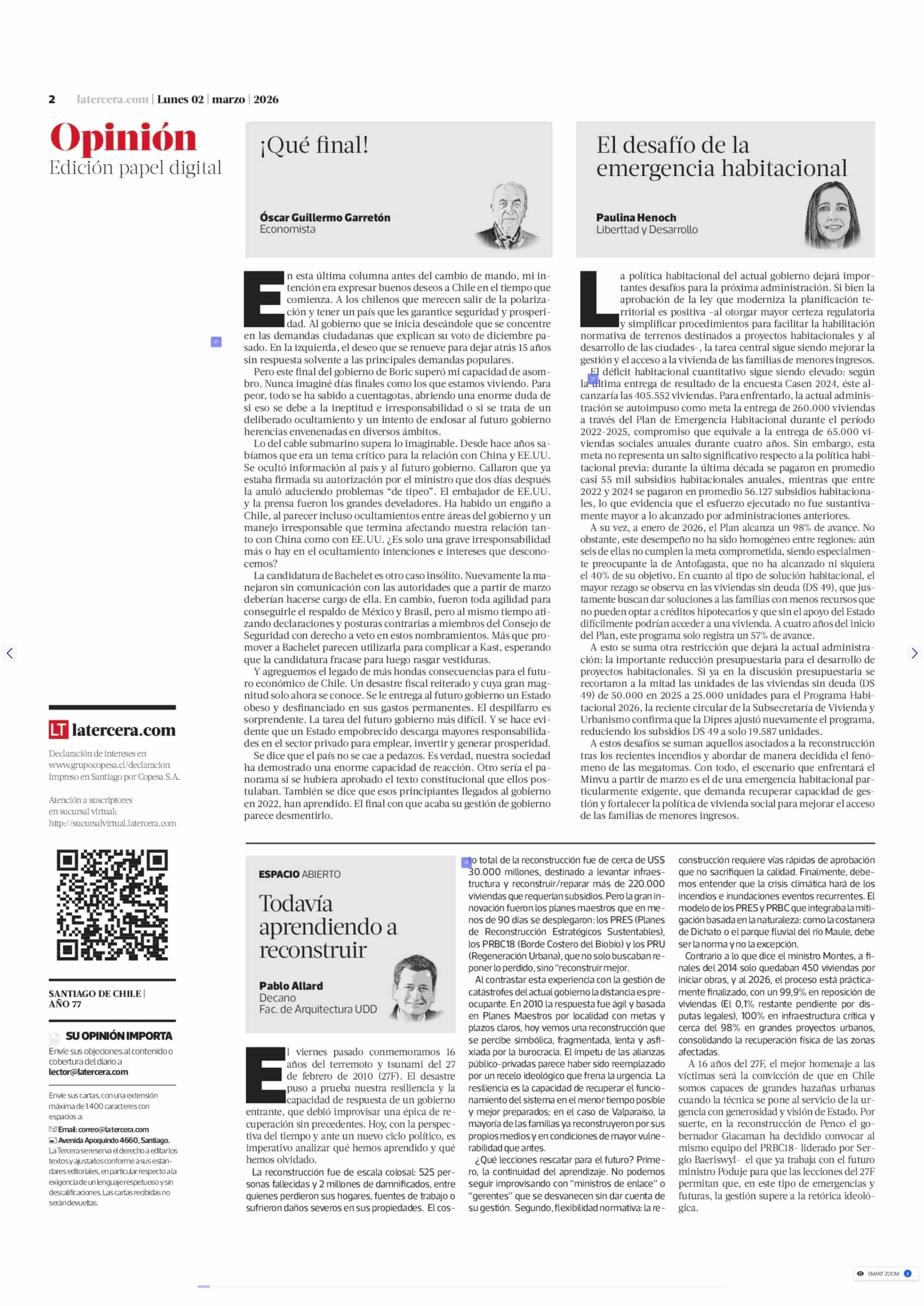 COLUMNAS DE OPINIÓN: Todavía aprendiendo a reconstruir 02-03-2026 La Tercera |